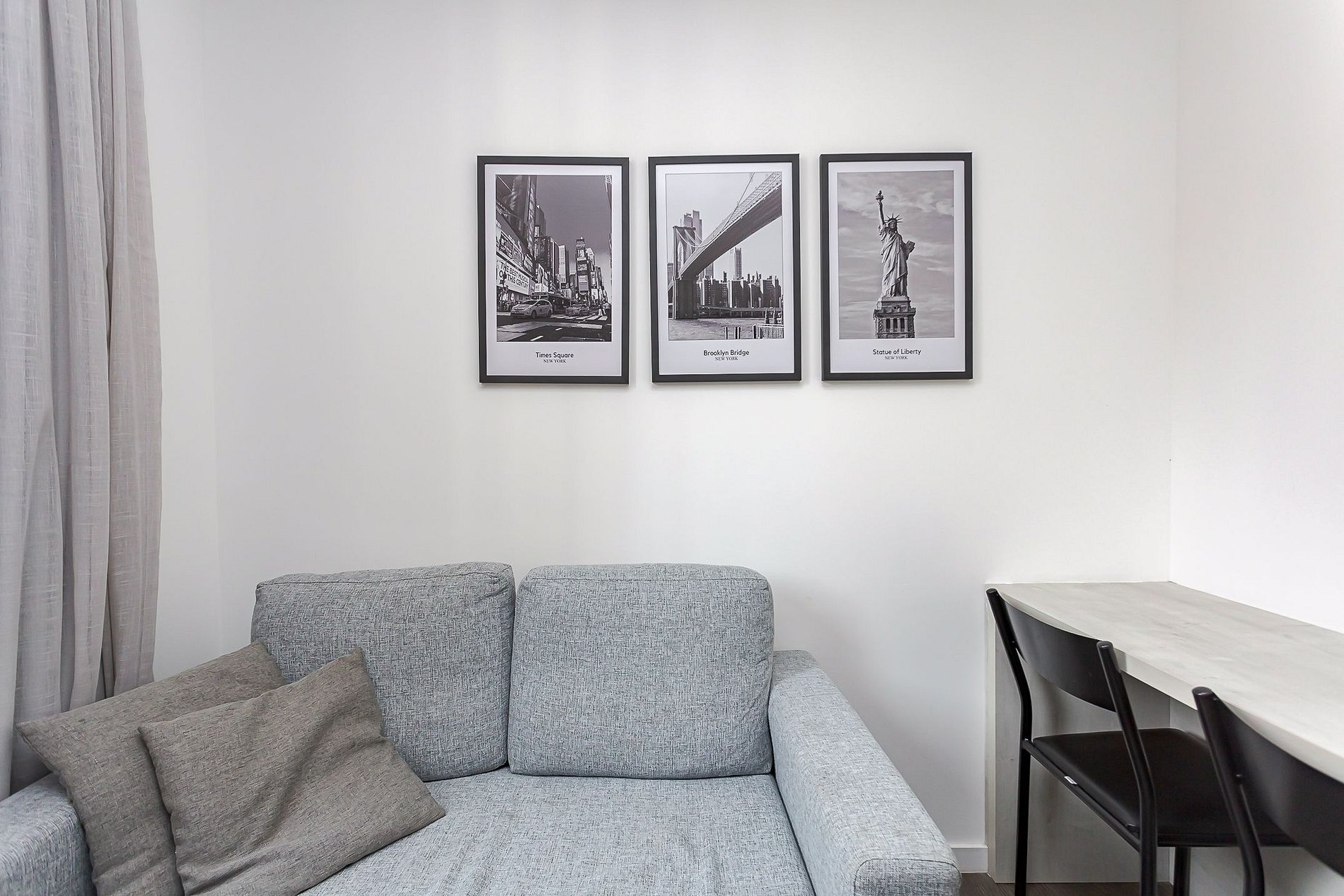 • Sala: ambiente com sofá, TV Smart, mesa para 2 pessoas e cortina blackout.