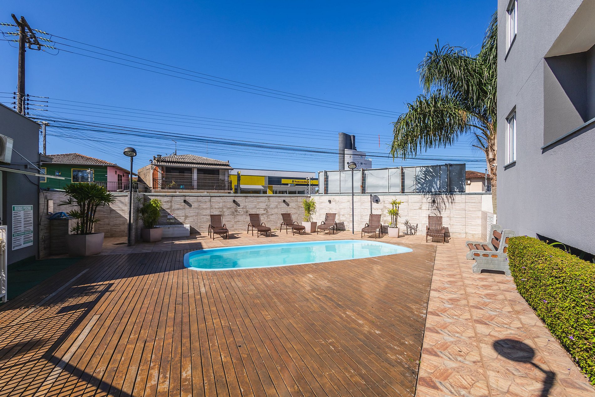 O condomínio oferece garagem, piscina ao ar livre, parquinho infantil e quadra de futebol de areia.