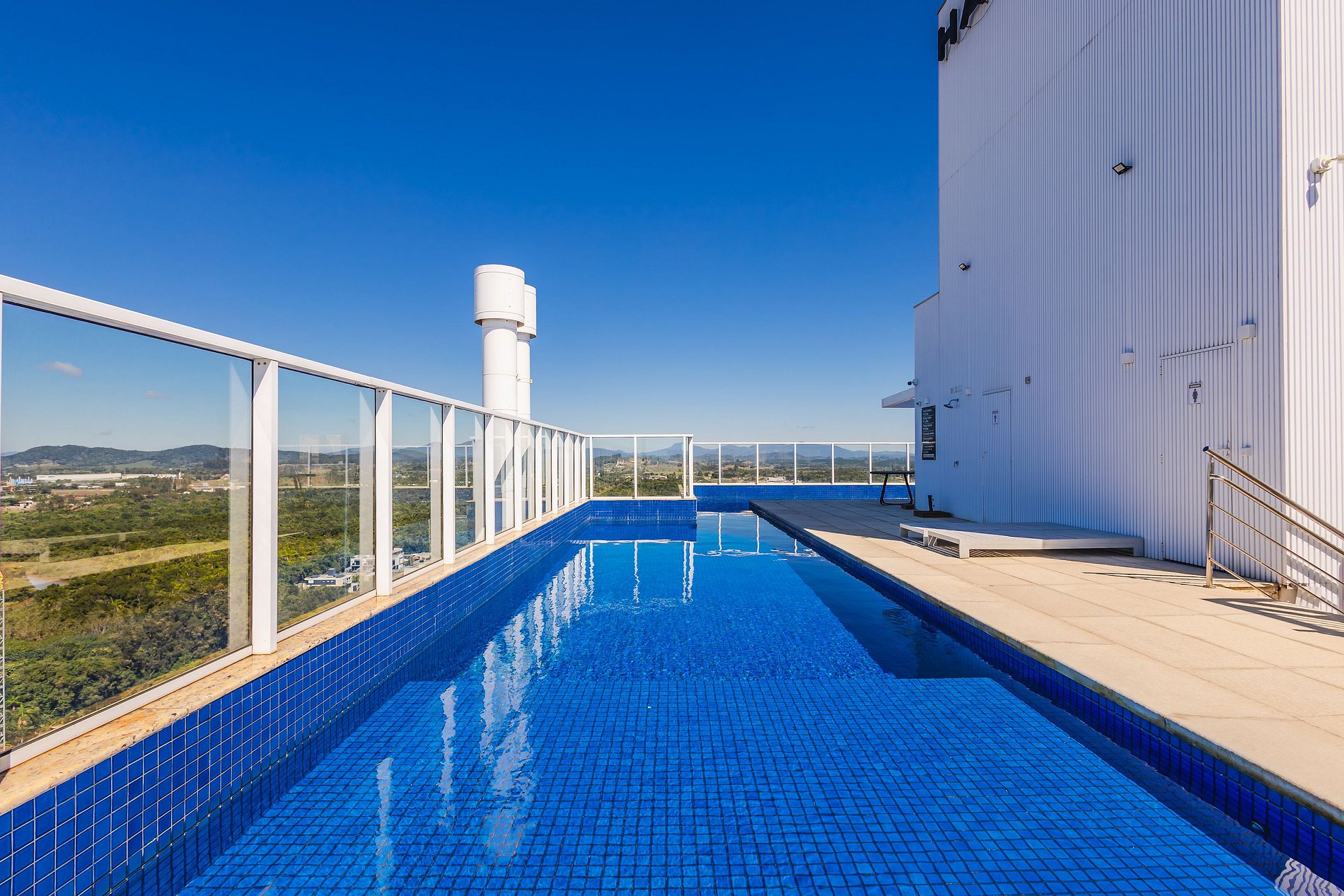 • Piscina de 70 m² no rooftop, piscina aquecida com raia de natação, sauna, academia, quadra poliesportiva, home cinema/game room, brinquedoteca, salão de jogos, espaço gourmet e deck solarium.