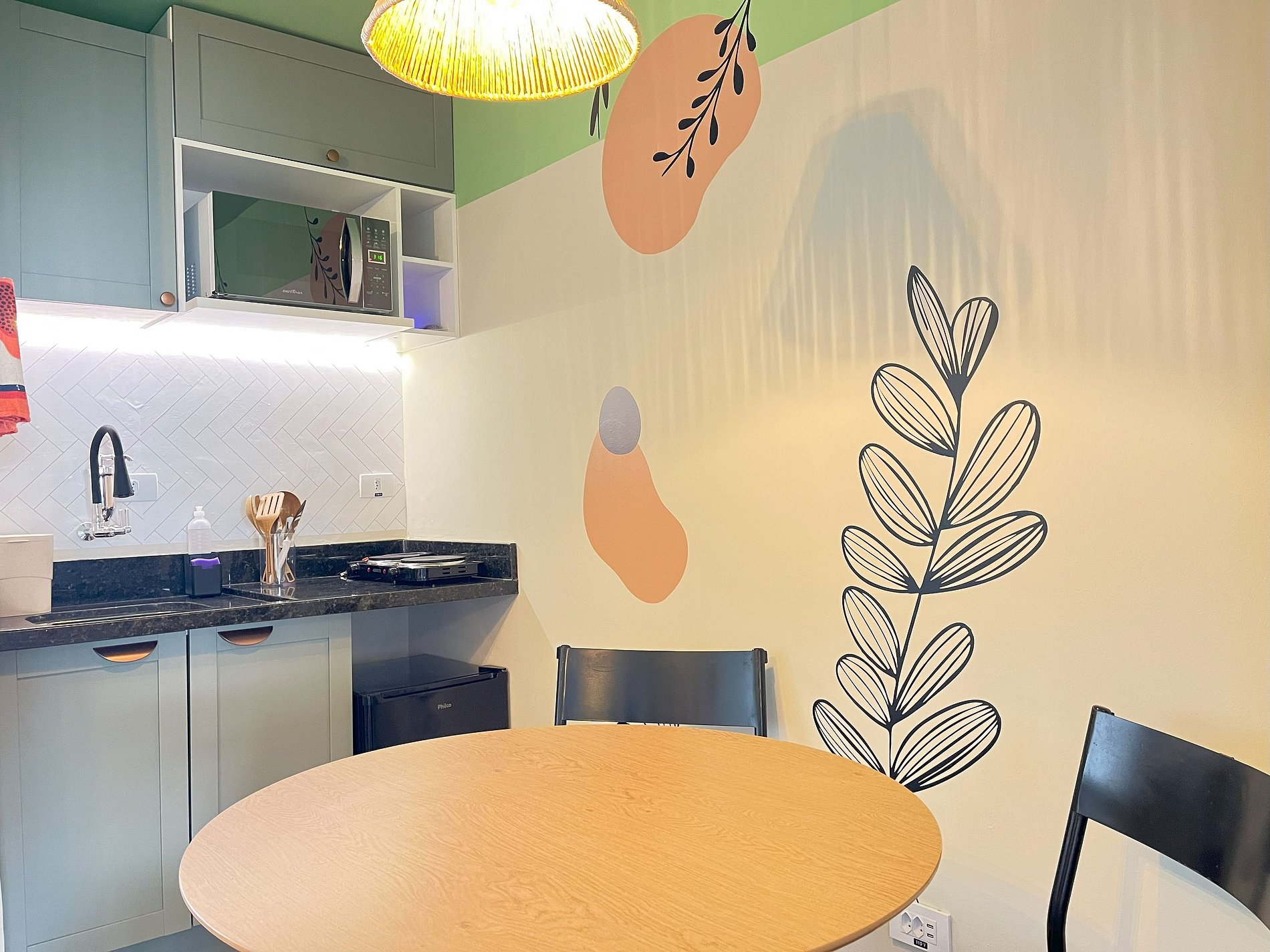 Seja para uma refeição rápida ou para trabalhar remotamente, nosso estúdio oferece um espaço multifuncional e super bacana!