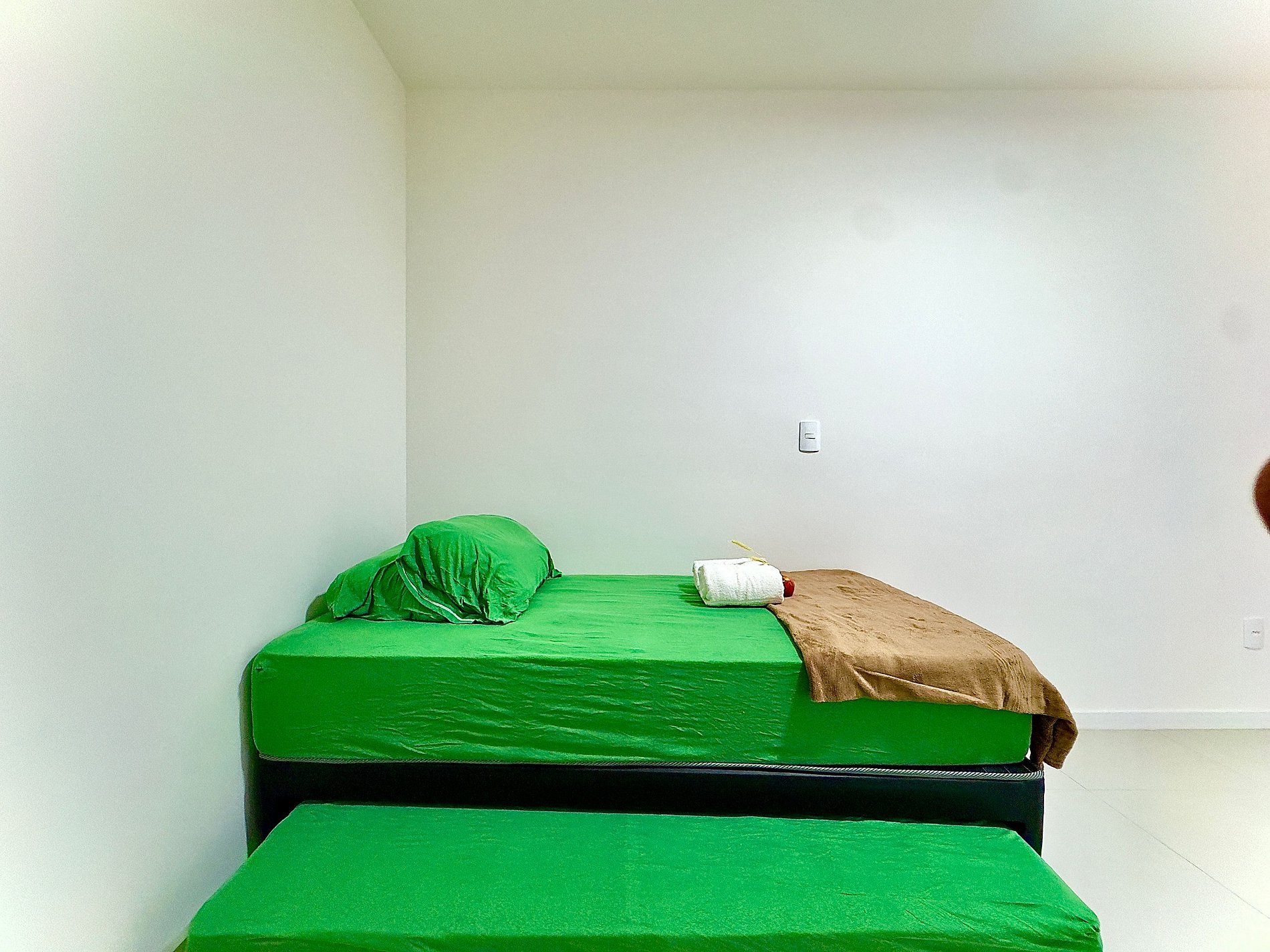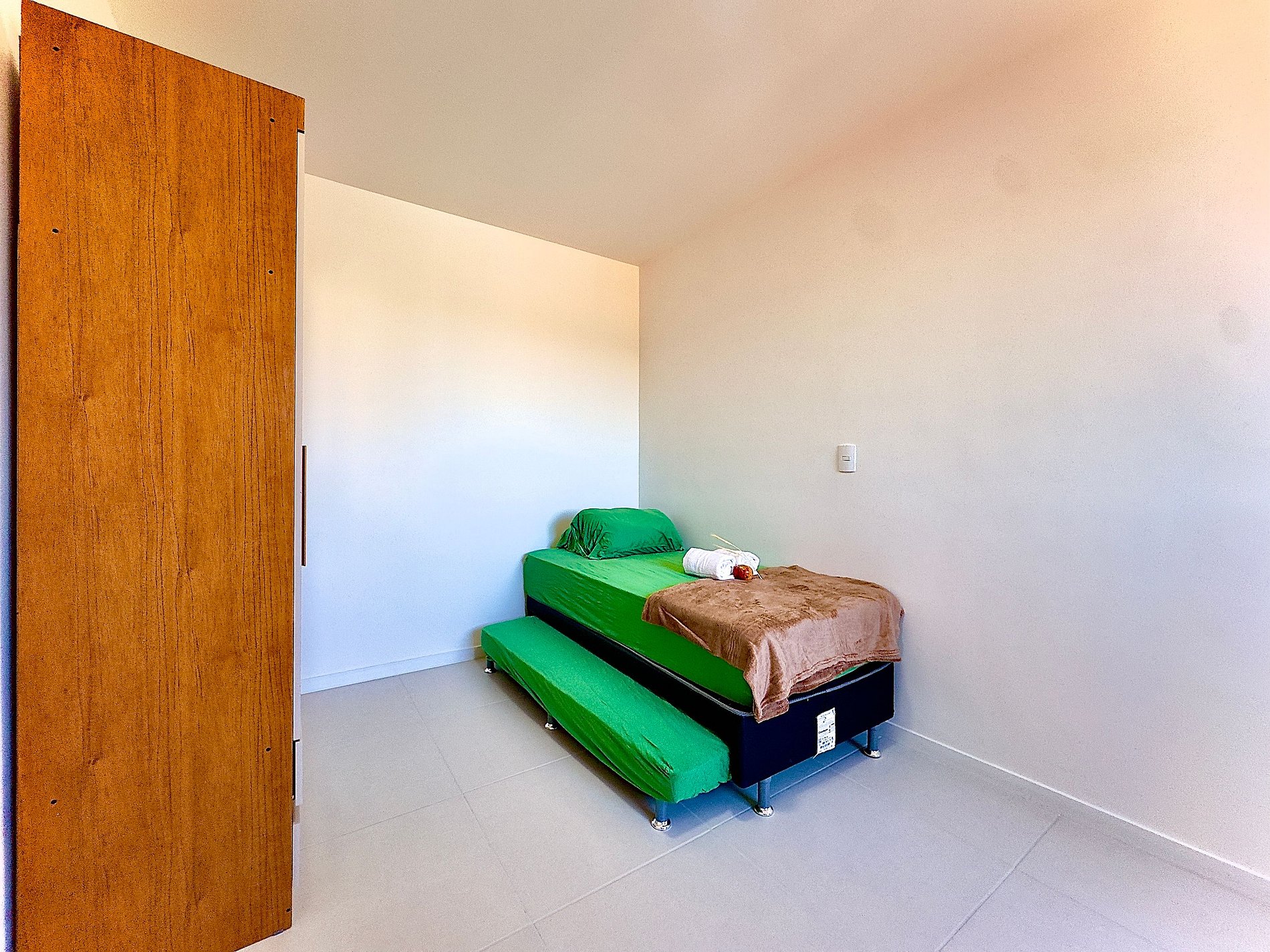 • Quarto 2 climatizado: 2 camas de solteiro, armário, cortina privativa e ar-condicionado.
