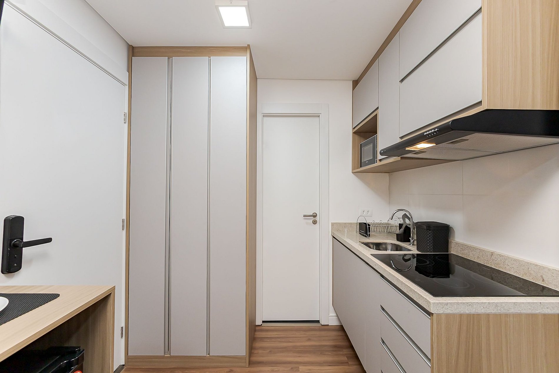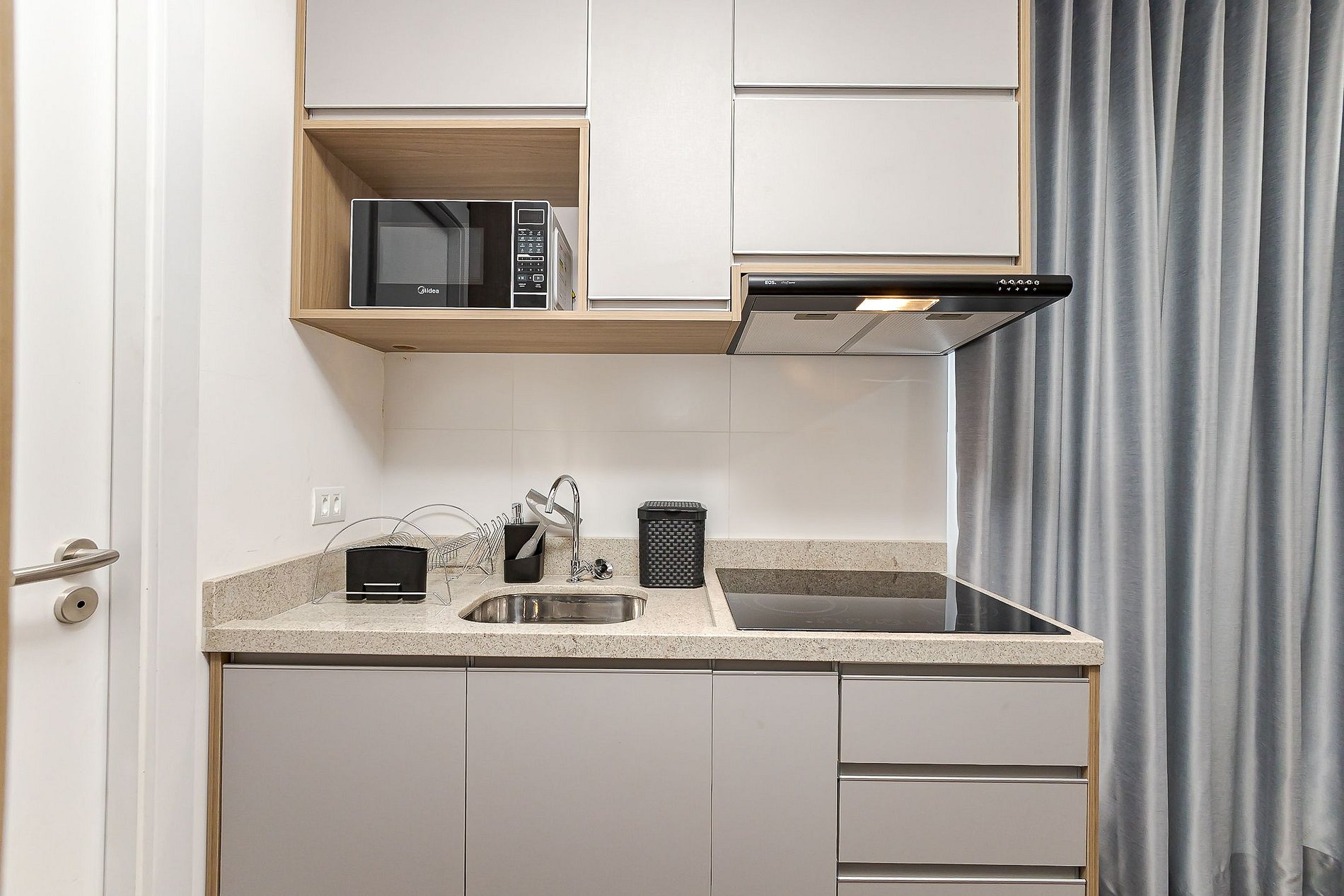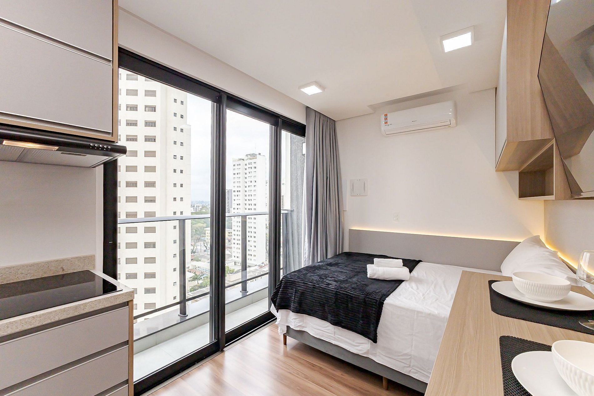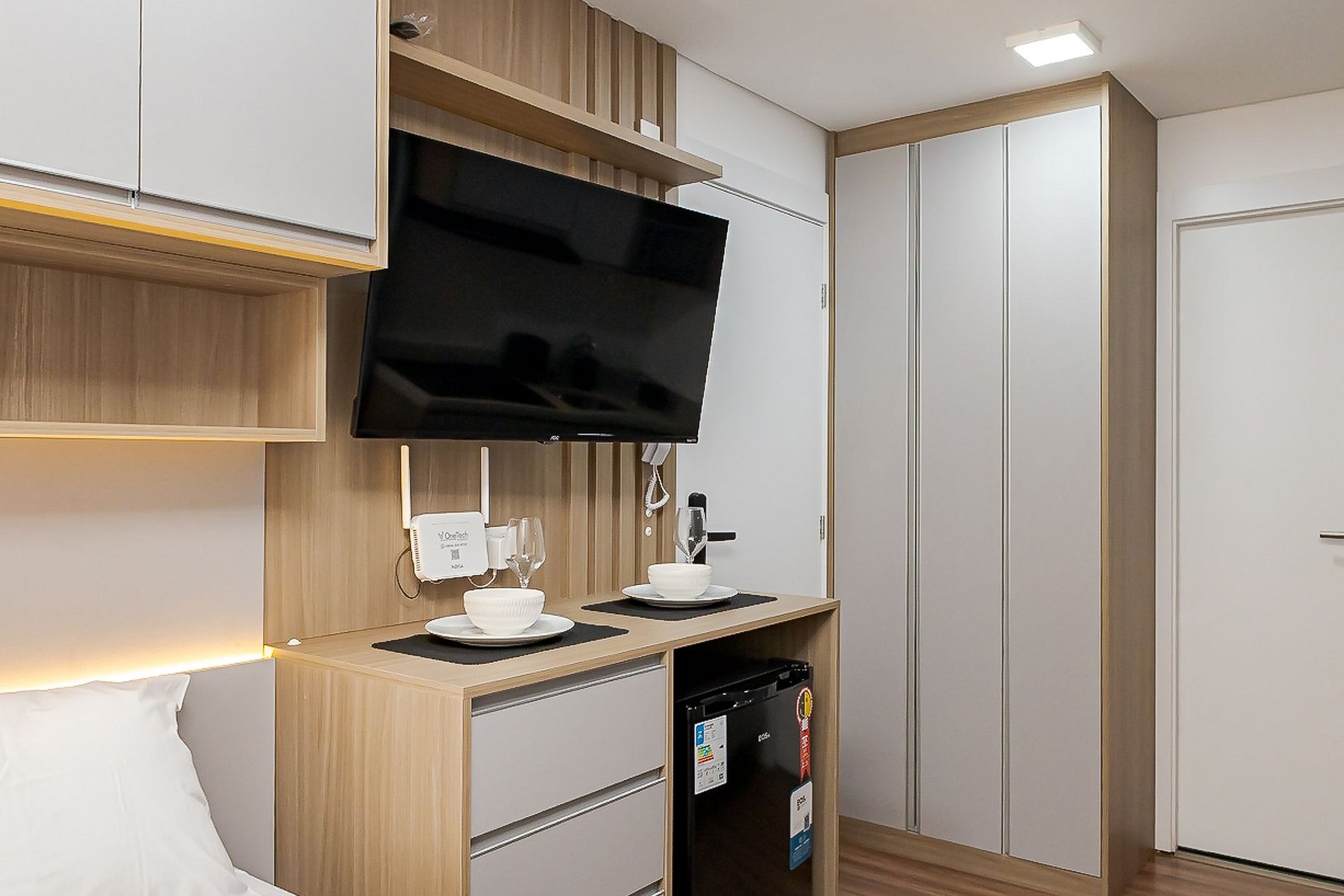 Este estúdio compacto de 16m² é ideal para quem busca uma estadia prática e funcional no Batel.