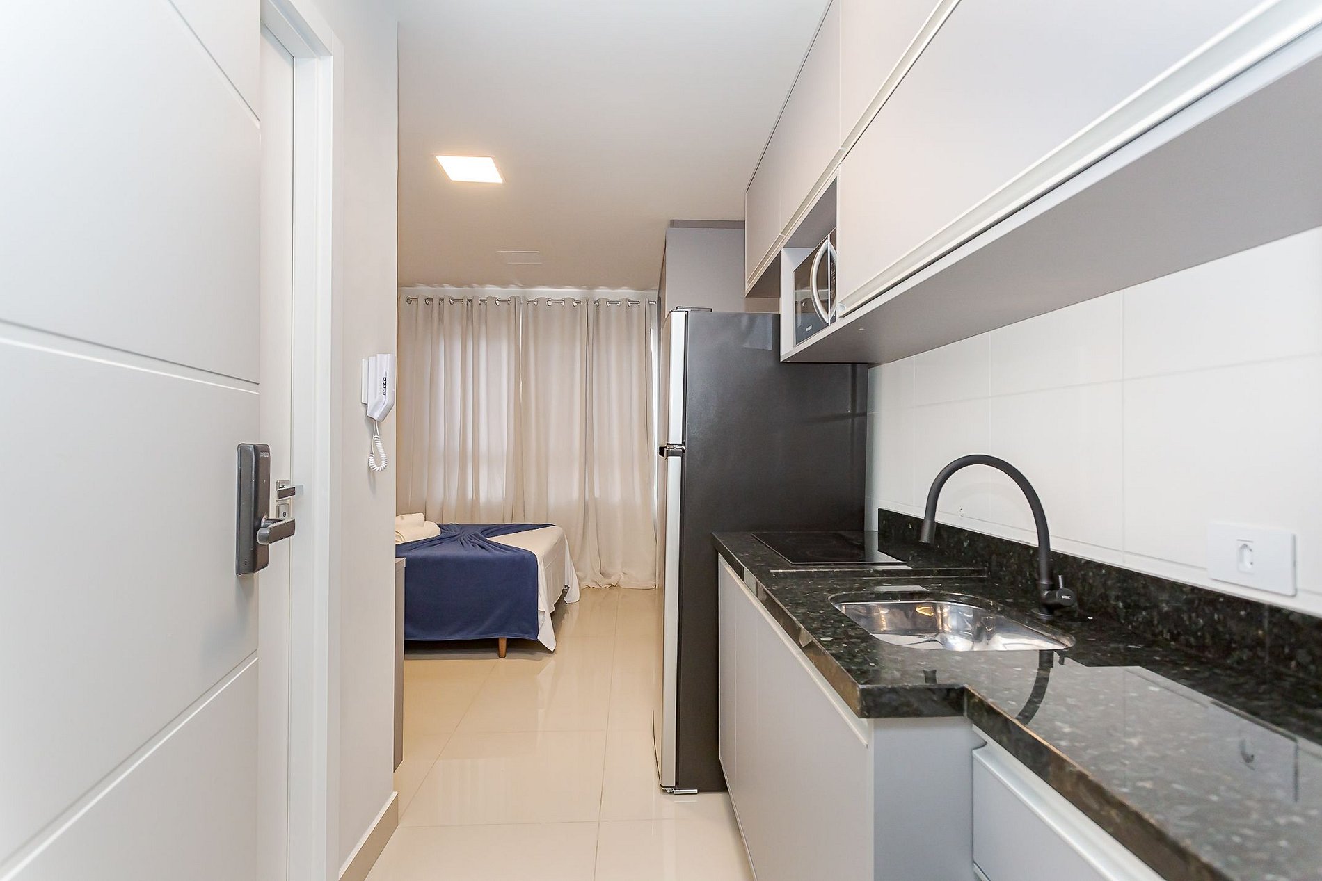 Estúdio moderno no MUV Residence, localizado na Av. Visconde de Guarapuava, no centro de Curitiba.