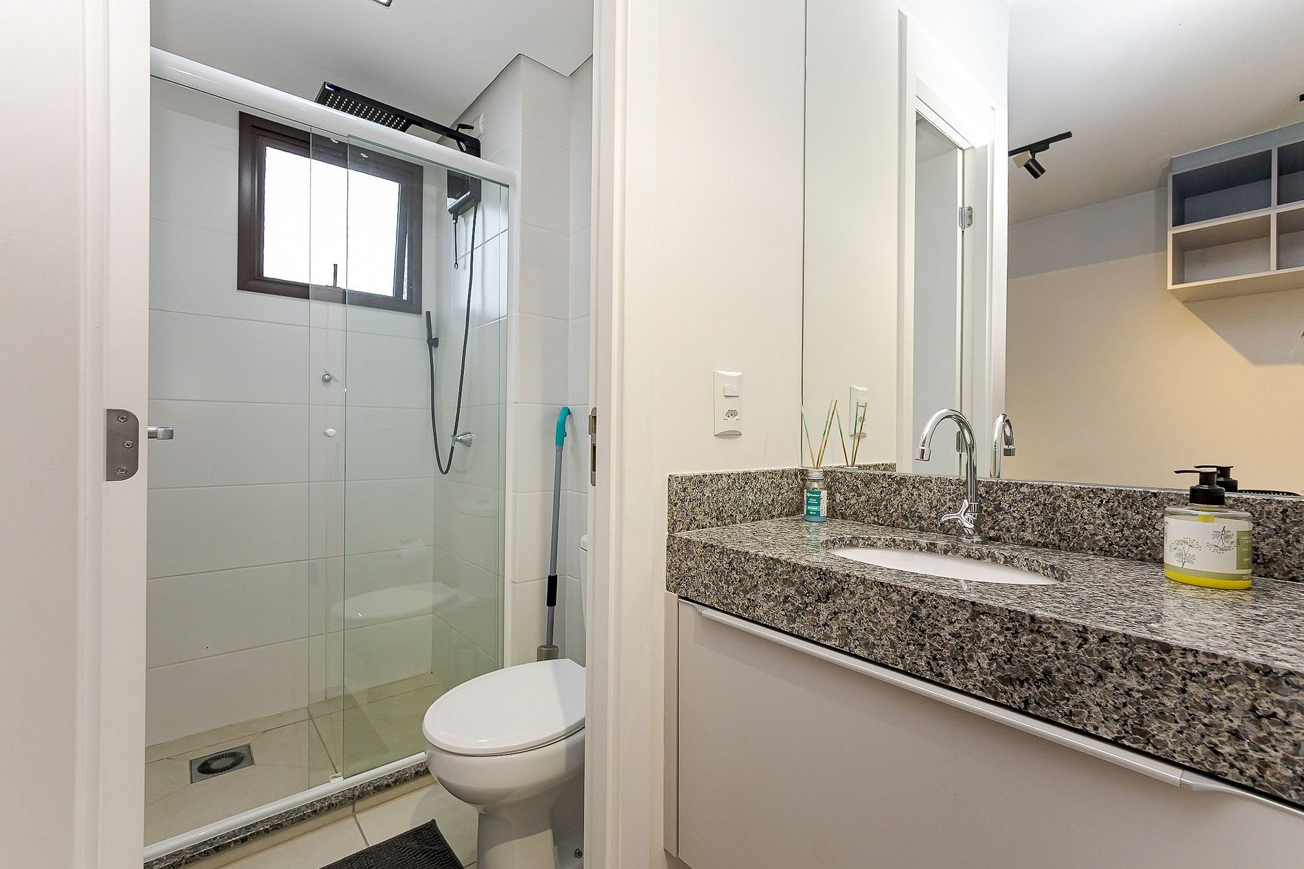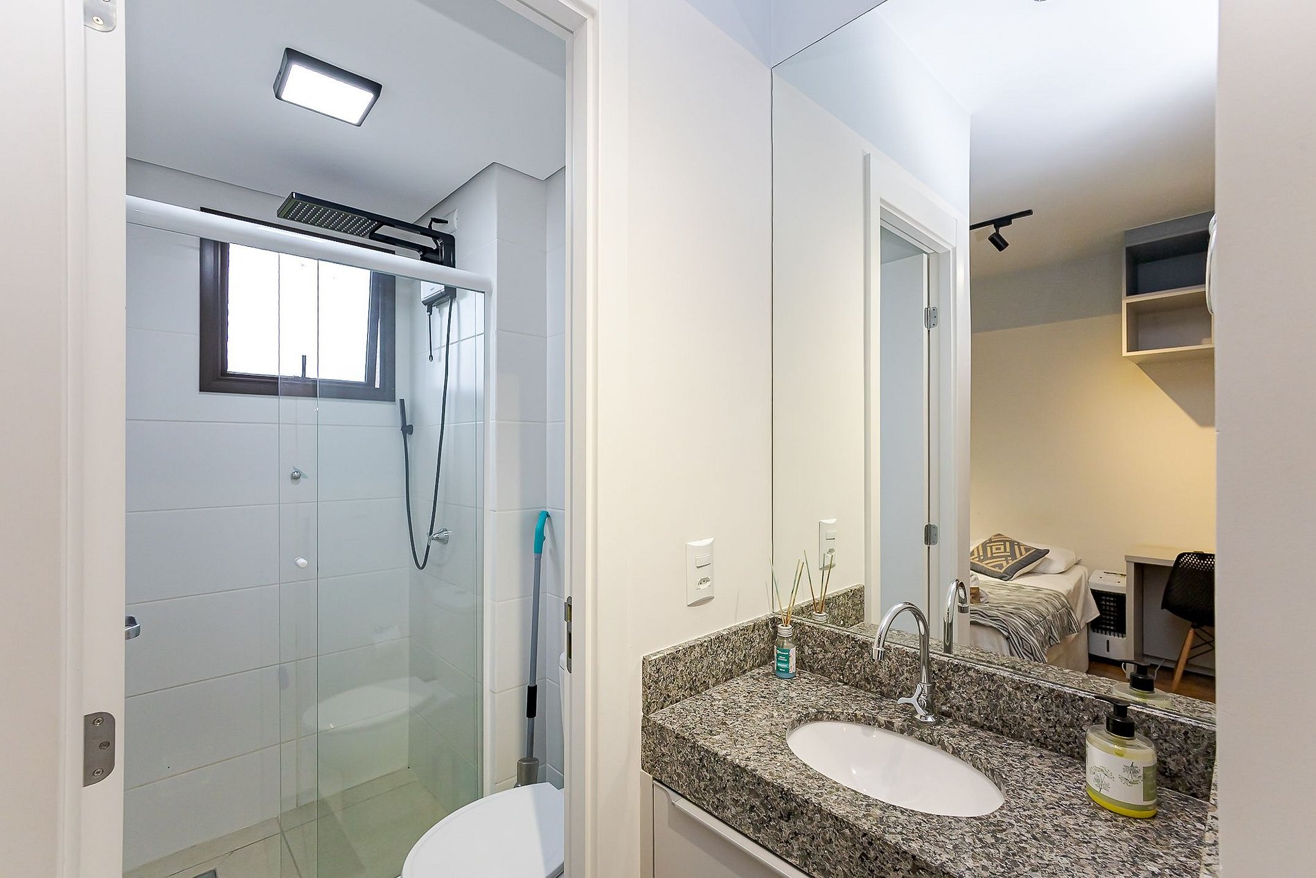 • Banheiro: chuveiro com água quente e cuba externa com espelho.
