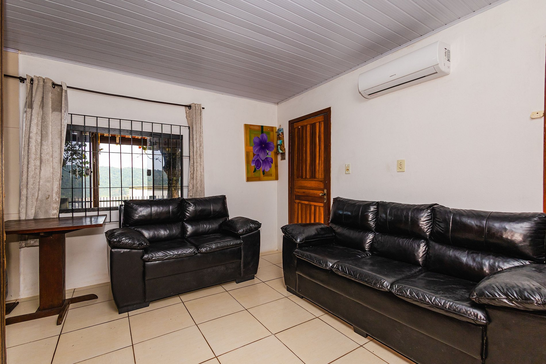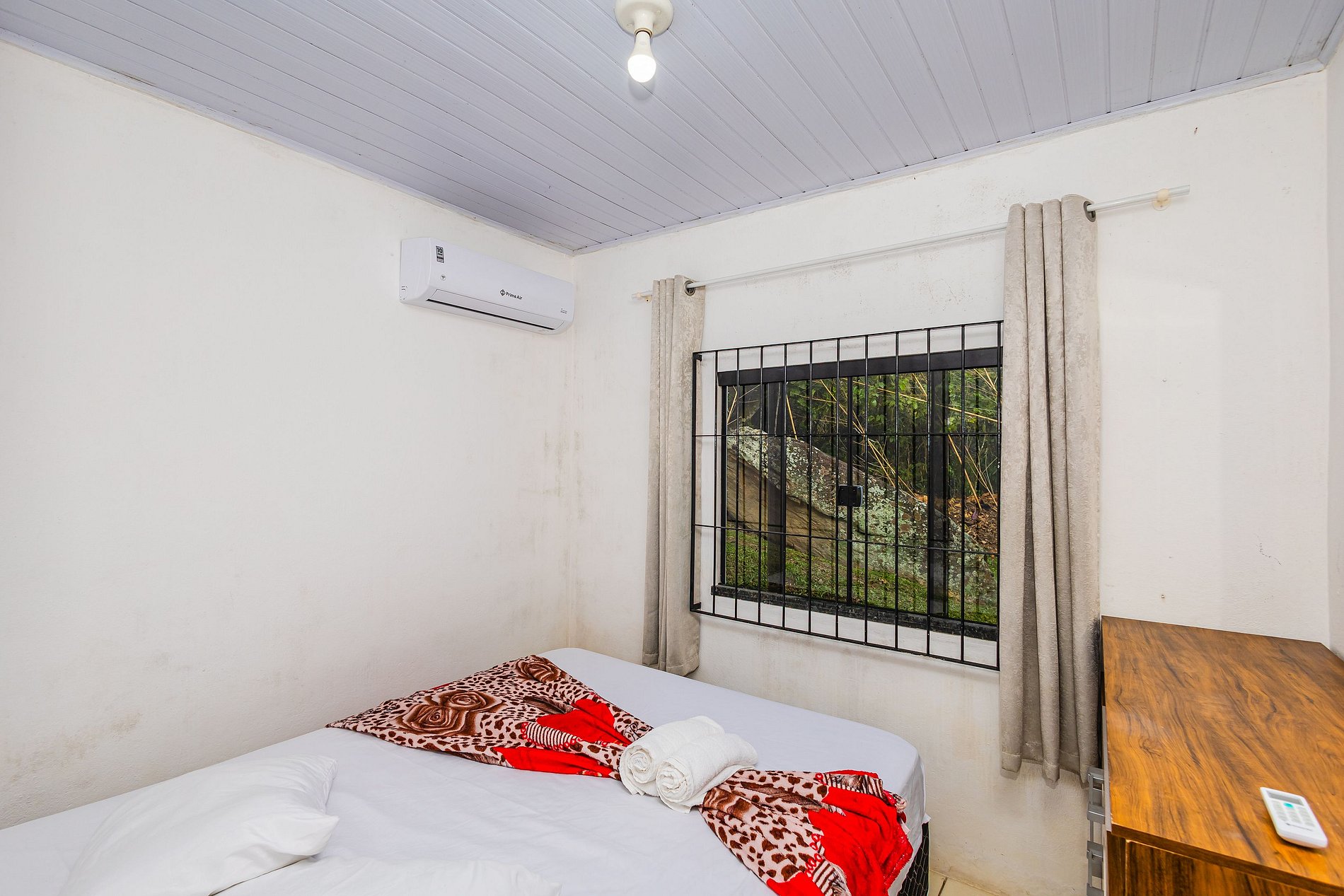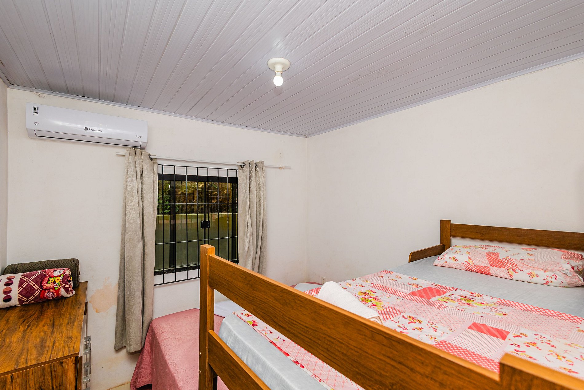 Para seu conforto, há ar-condicionado em dois quartos e também na sala, proporcionando um clima agradável em toda a casa.