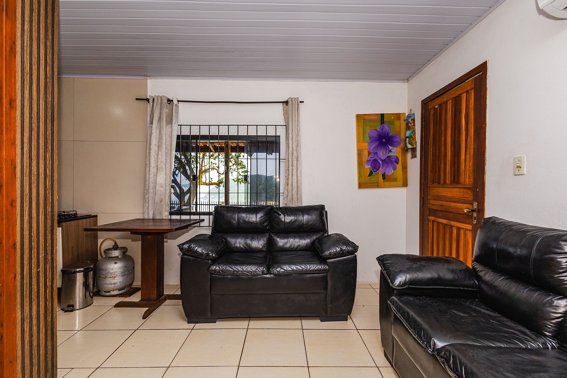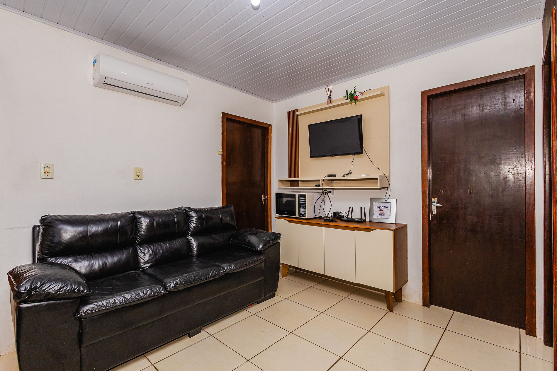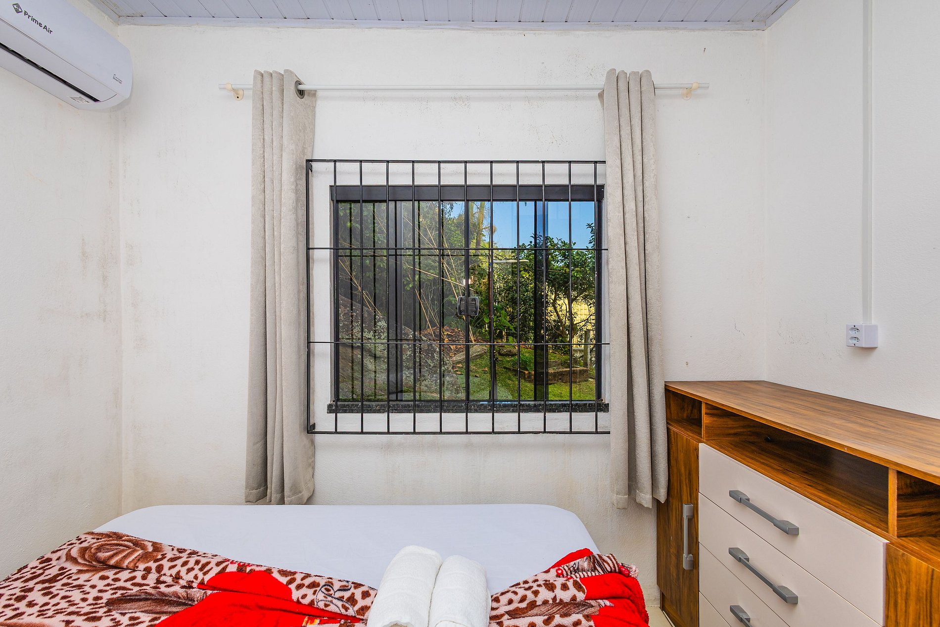 Para seu conforto, há ar-condicionado em dois quartos e também na sala, proporcionando um clima agradável em toda a casa.