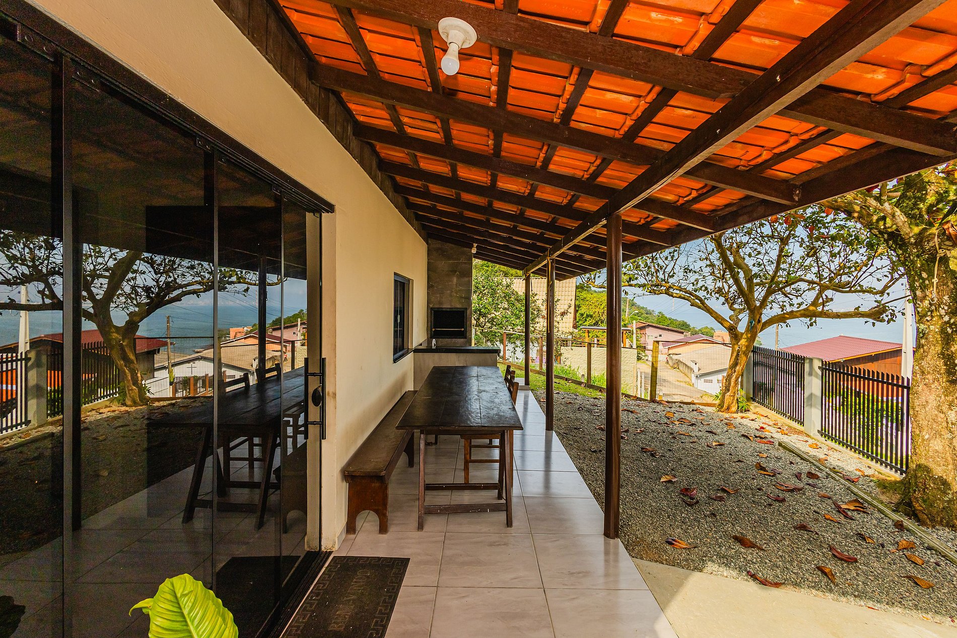 Vista deslumbrante para a praia de São Miguel, em Penha/SC. Nossa casa, estrategicamente posicionada no morro, é o local perfeito para famílias que desejam relaxar com vista ao mar.