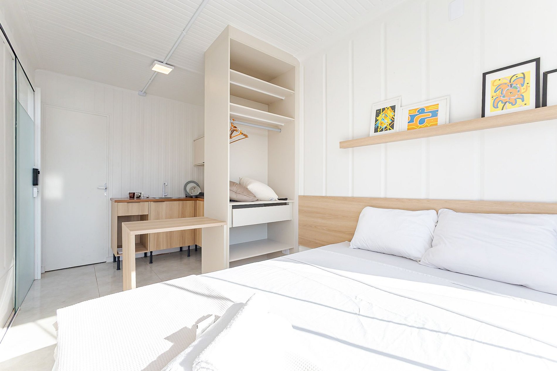 A Casa Bem-te-vi é um refúgio acolhedor dentro da Vila UMI, um espaço sustentável criado a partir de containers ecológicos.