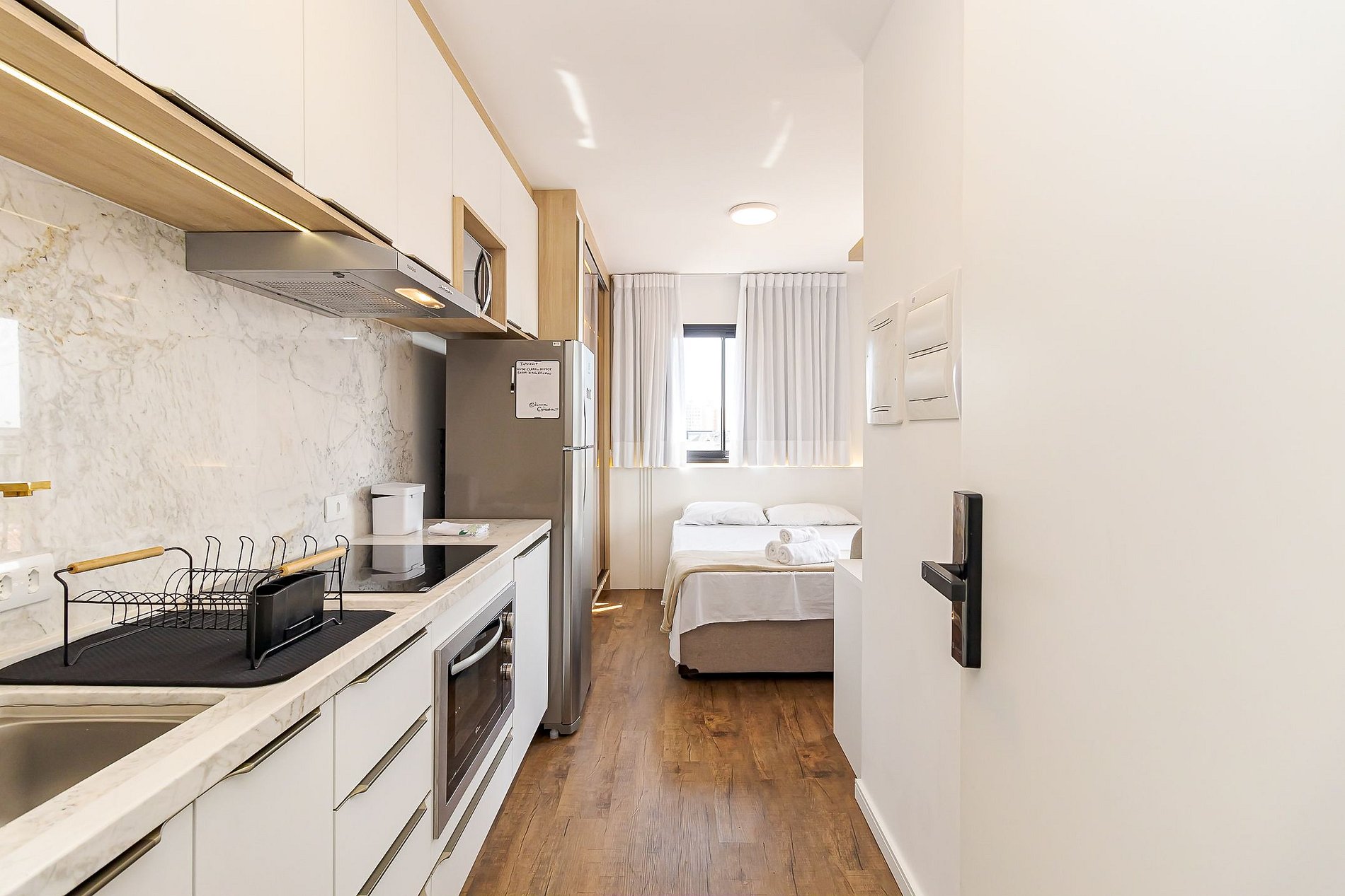 Estúdio moderno e de alto padrão no One House, localizado no bairro Novo Mundo, em Curitiba.