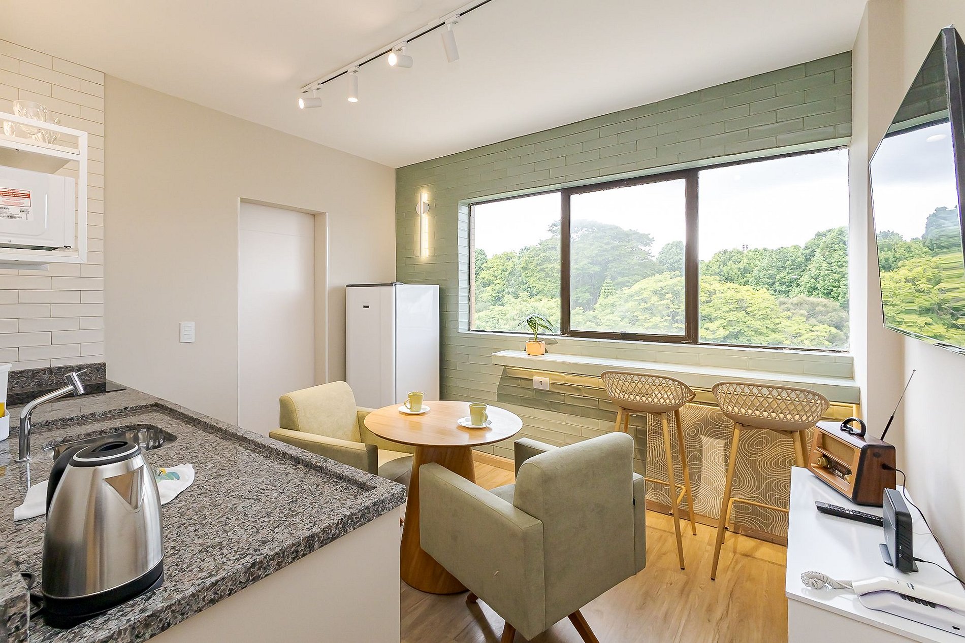 Apartamento no Estúdio do Bosque, localizado no Juvevê, com vista privilegiada para o verde e ambientes modernos que unem praticidade e conforto.