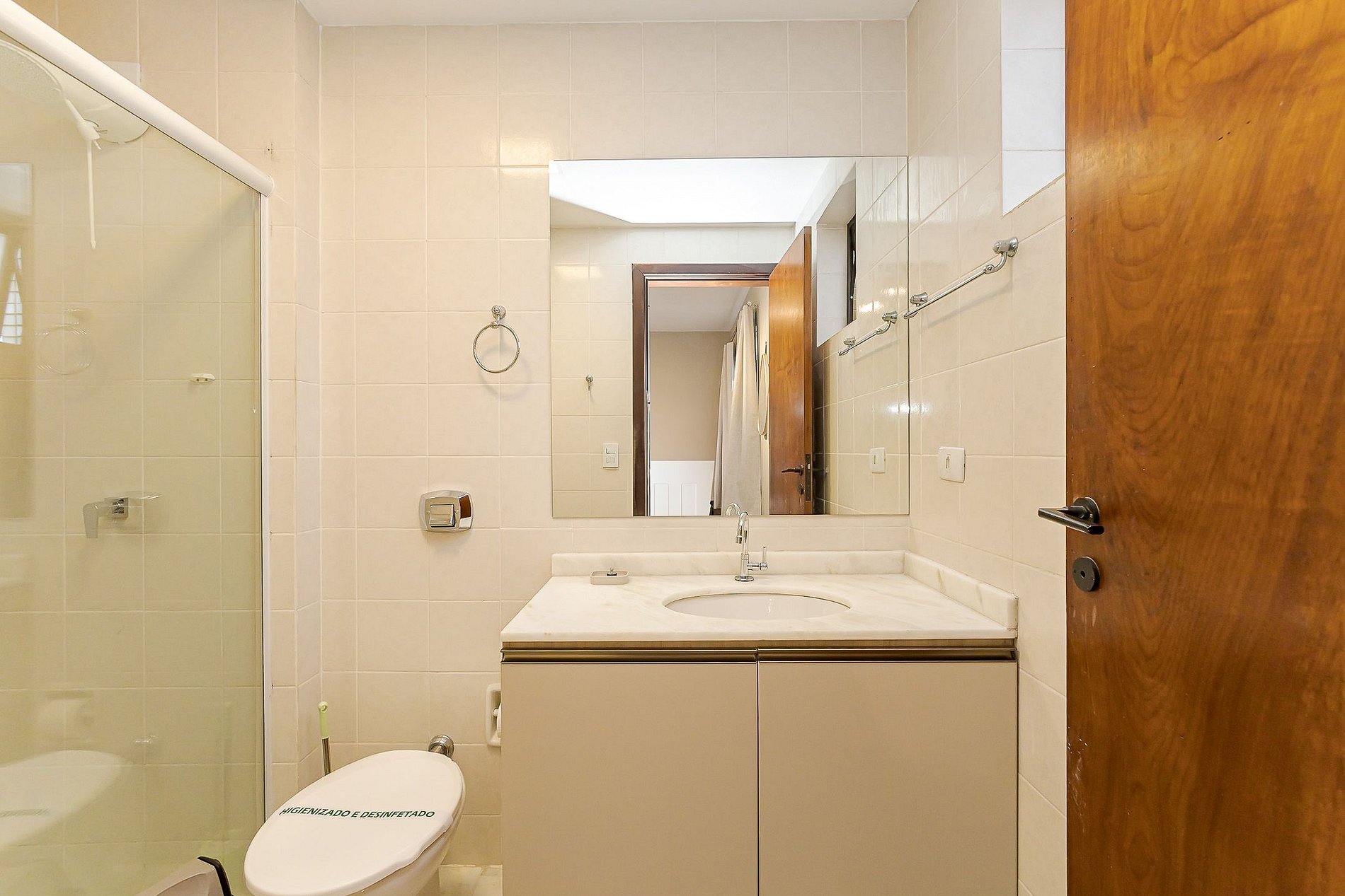 • Banheiro: completo, com box de vidro, espelho amplo e janela basculante que garante boa ventilação.