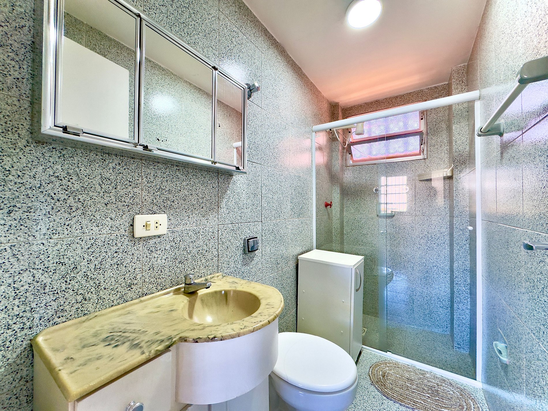 • Banheiros: além do banheiro da suíte, o apartamento possui 2 banheiros sociais completos, todos com box de vidro, armário espelhado e água quente.