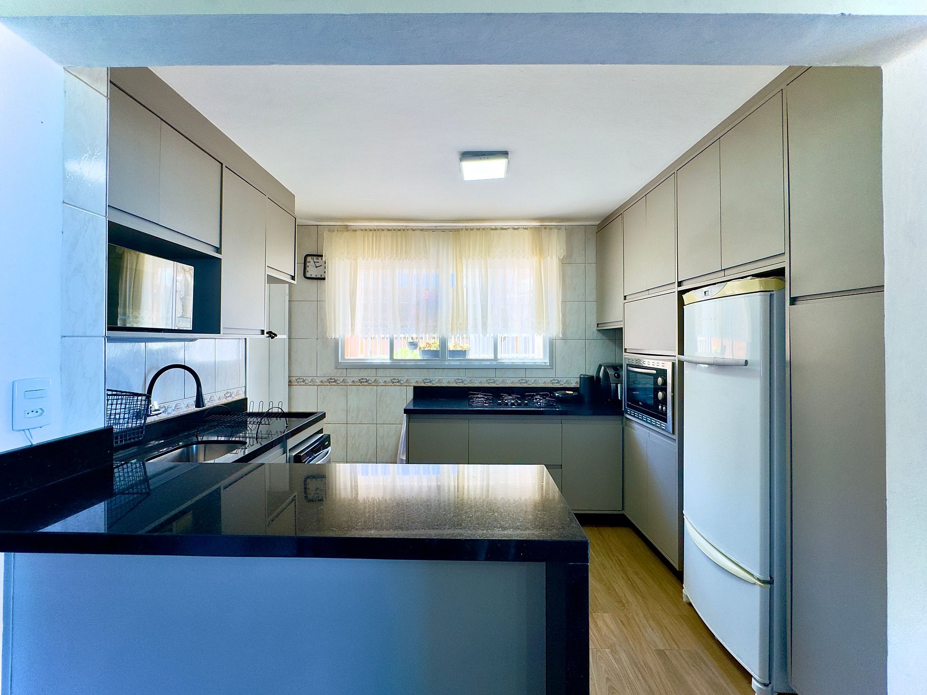 • Cozinha conectada à sala: equipada com cooktop de 5 bocas, forno, micro-ondas, airfryer, geladeira, lava-louças, liquidificador, sanduicheira, pratos, copos, talheres, panelas e utensílios completos.