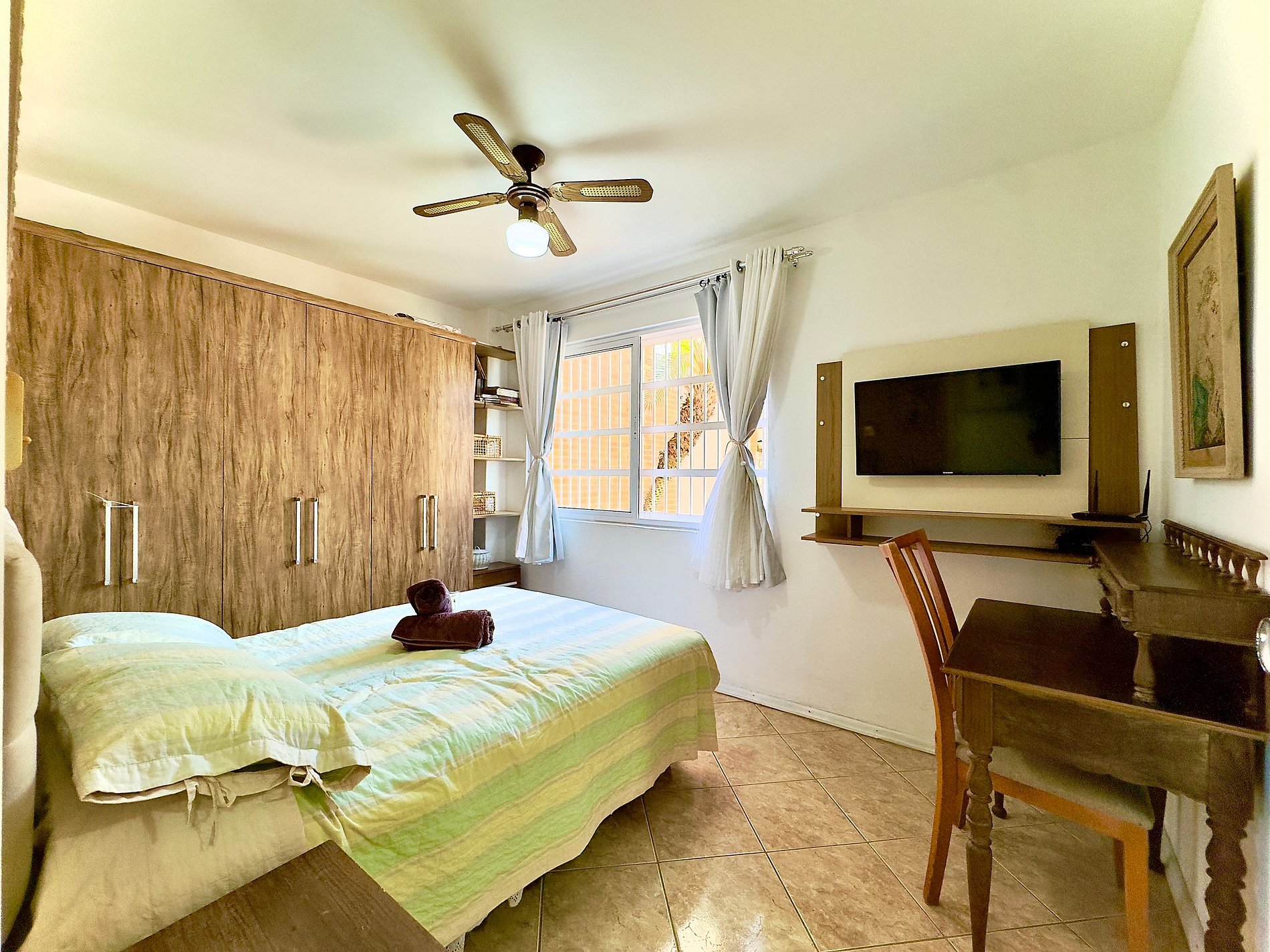 • Quarto 2: cama de casal, mesas de apoio, abajur, TV, armário, ventilador de teto e cortina blackout.