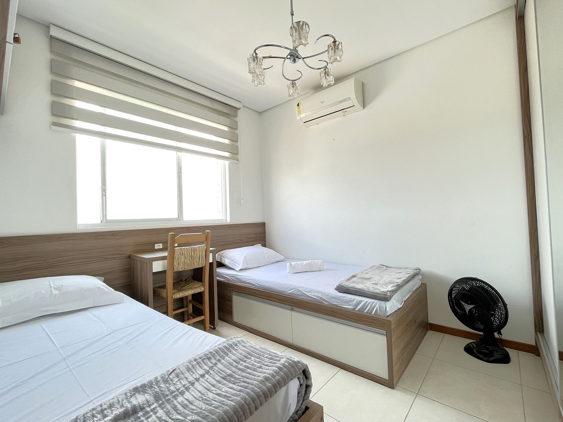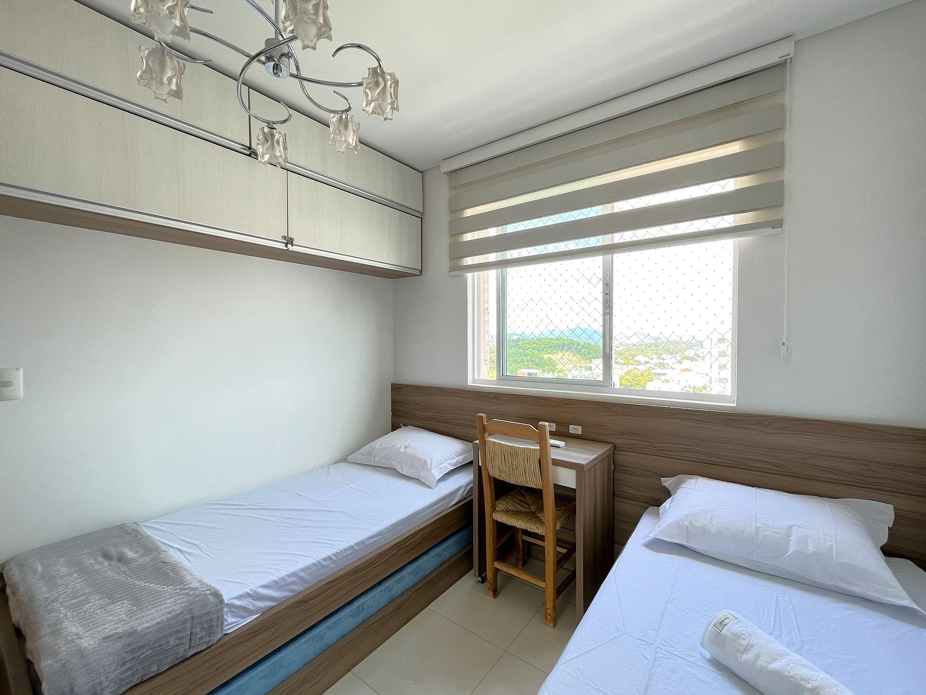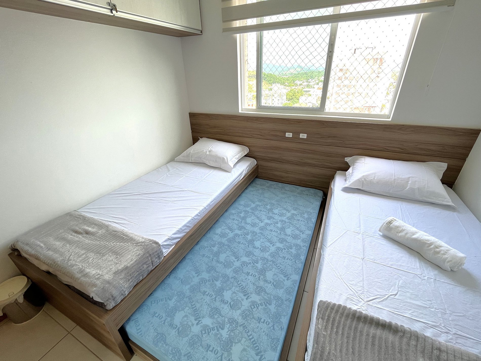> Quarto Família: Duas camas de solteiro + uma cama extra, ideal para a família.