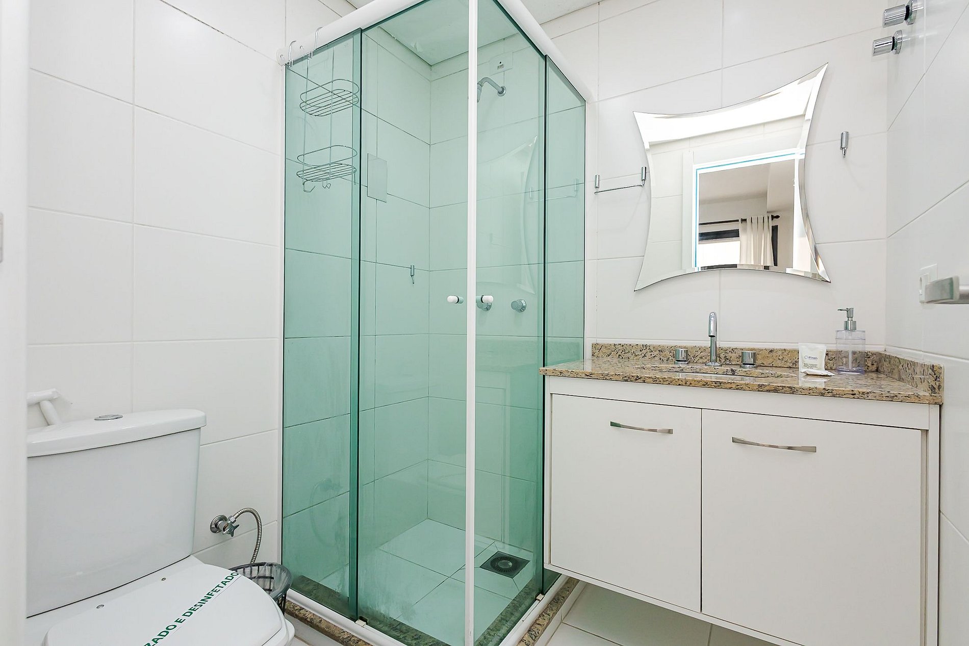 A entrada no apartamento é feita por fechadura eletrônica, garantindo praticidade e autonomia durante toda a estadia.