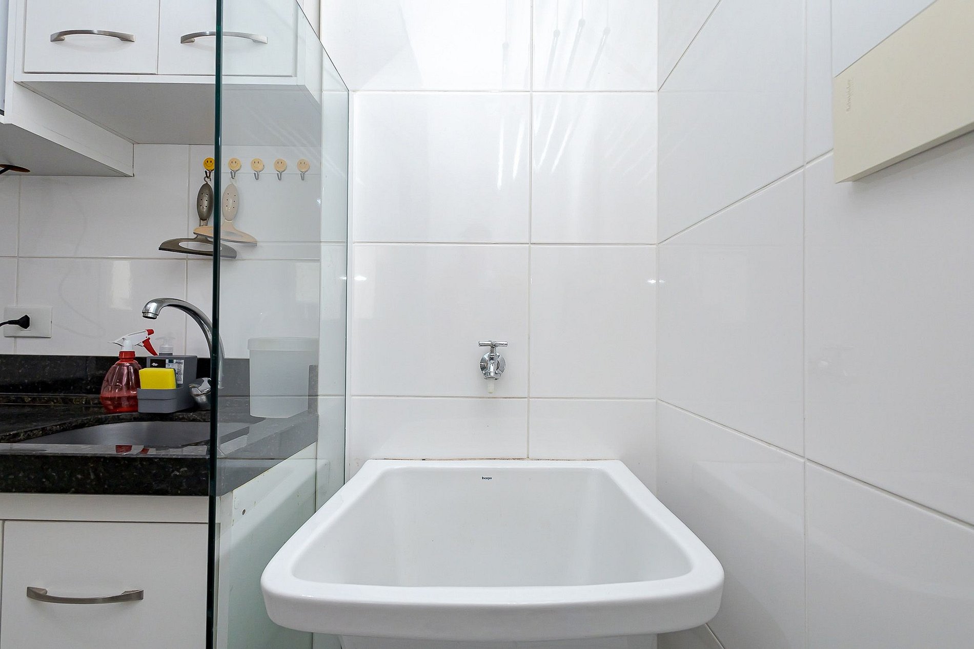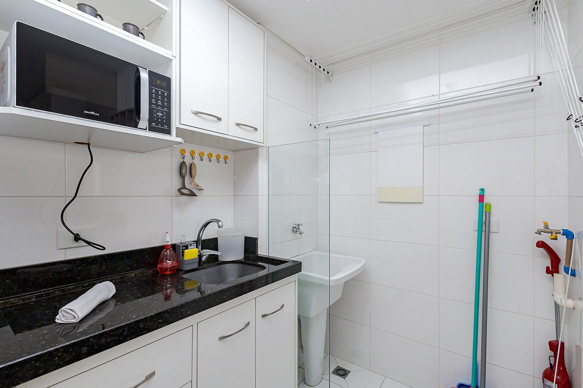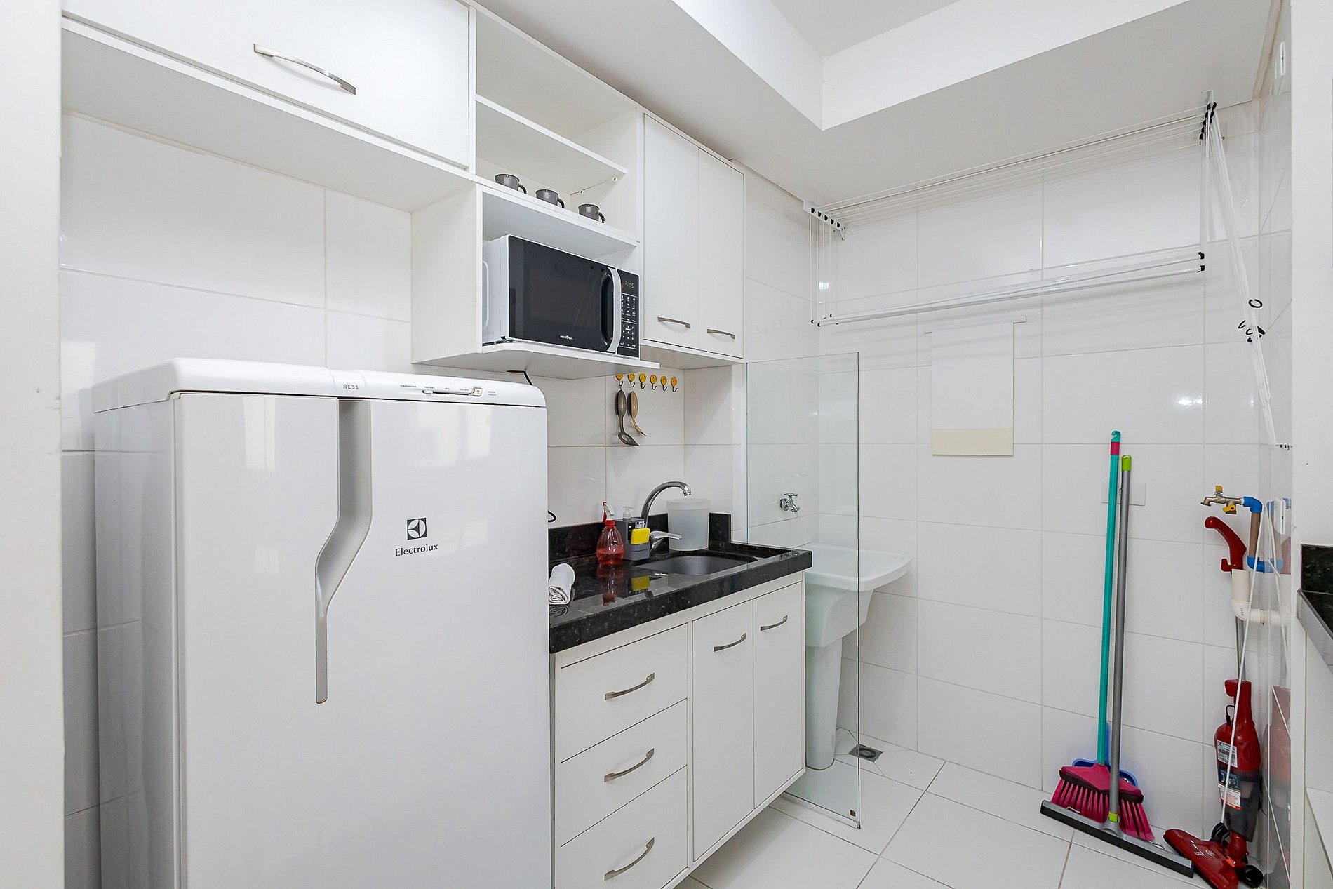 • Lavanderia: localizada ao final da cozinha, com tanque e varal para secagem de roupas.