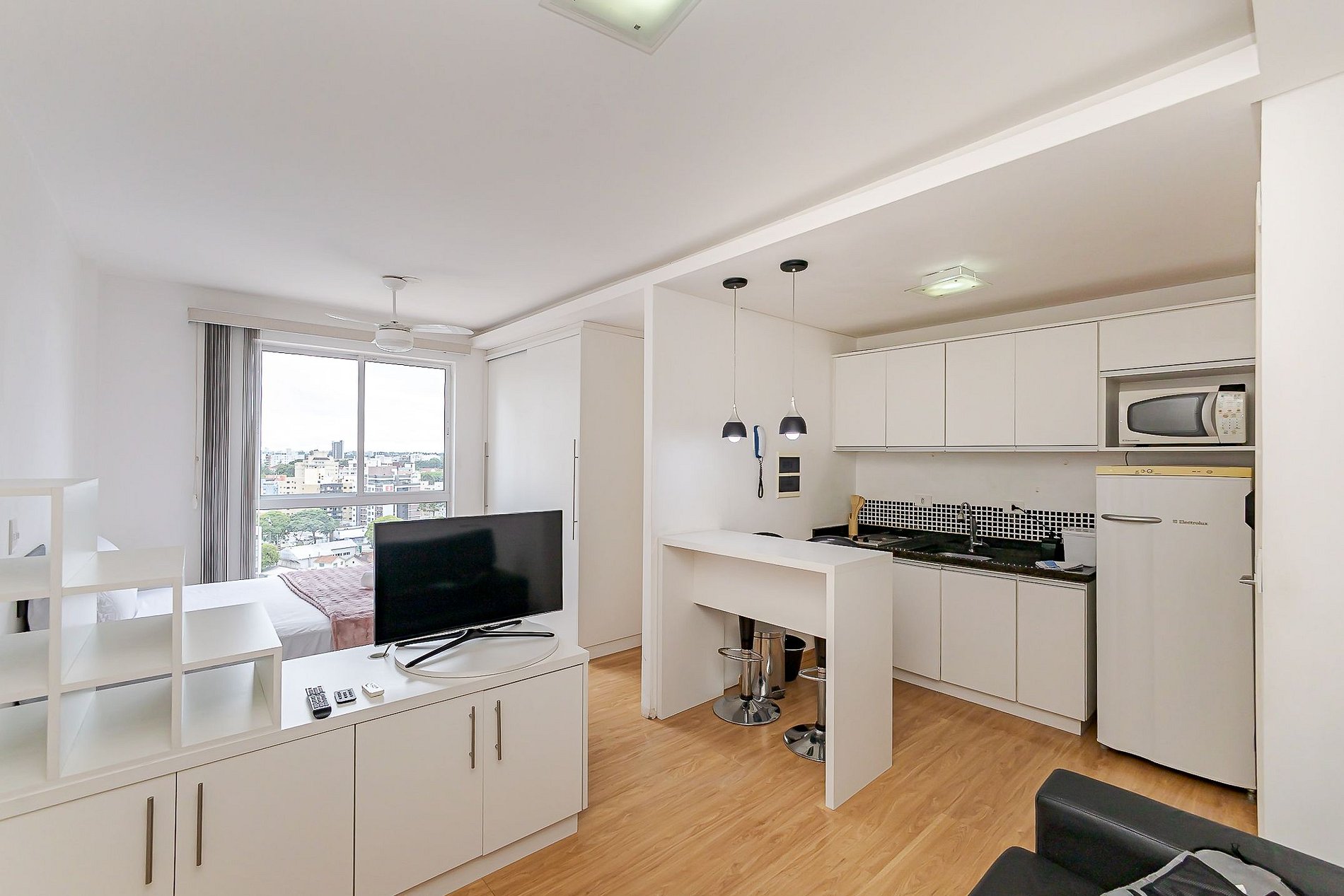 Em ambiente integrado, o imóvel oferece cama de casal, sofá, cozinha equipada e banheiro completo, ideal para quem busca praticidade, conforto e fácil acesso ao Centro, UFPR e principais pontos da cidade.