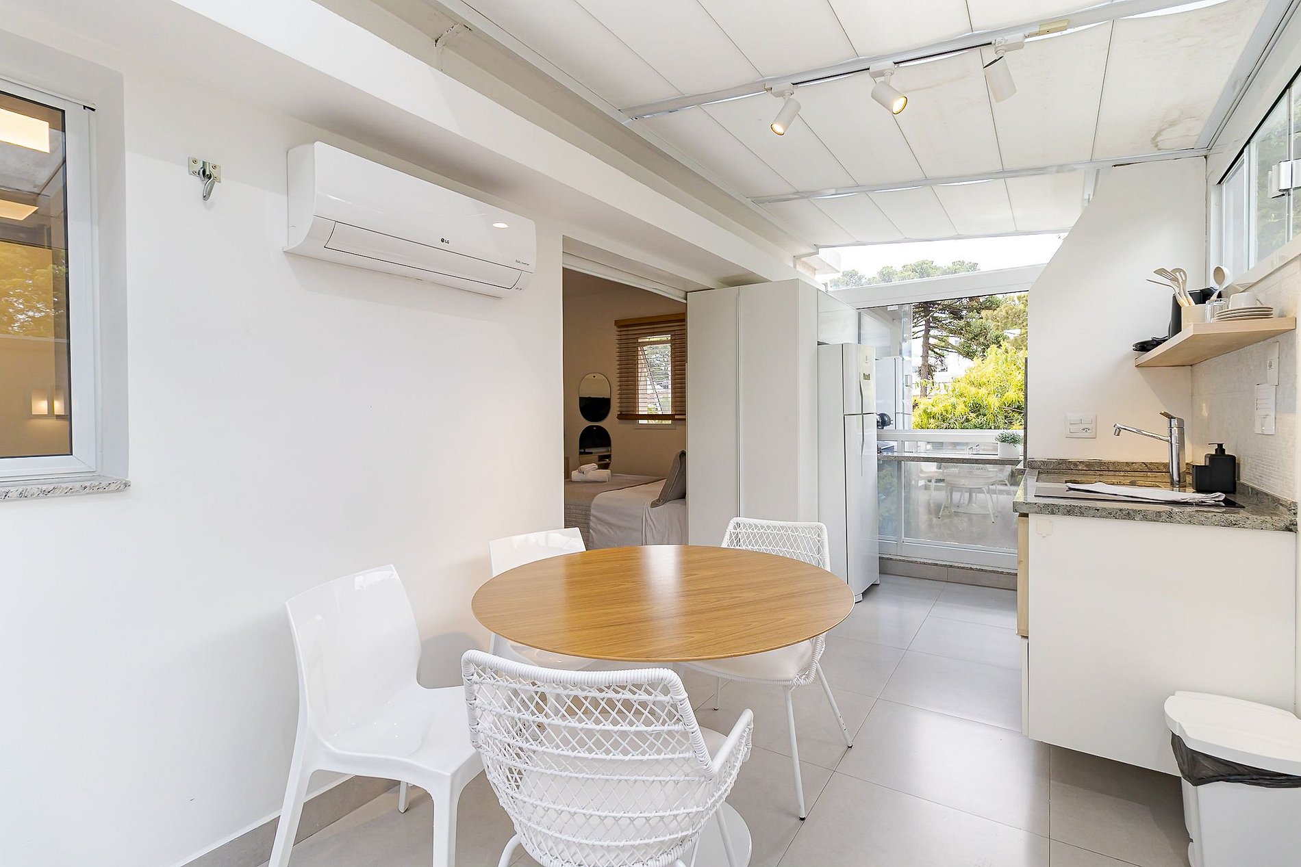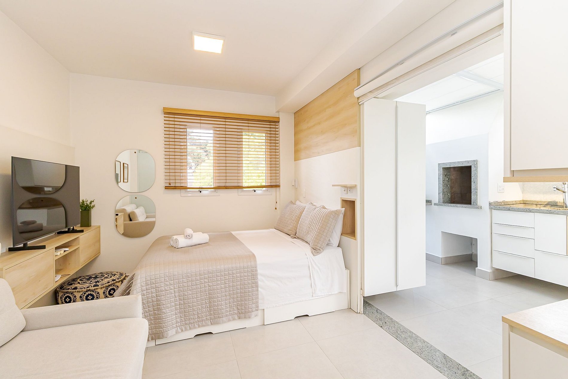 Este apartamento é charmoso, acolhedor e projetado para que você se sinta em casa desde o início. Possui churrasqueira privativa, sofá-cama confortável e vista para uma rua calma, ideal para relaxar após um dia intenso.