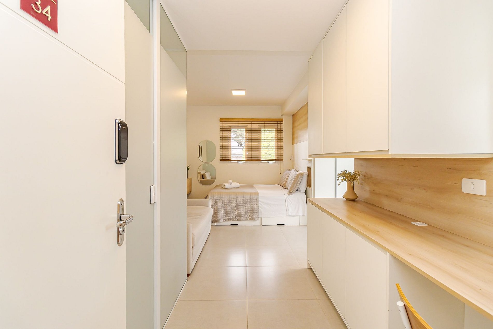 Aqui você conta com lavanderia OMO para otimizar seu tempo e um terraço incrível com vista para a cidade, perfeito para relaxar no final do dia. Um espaço projetado para quem valoriza conforto, praticidade e uma experiência completa.