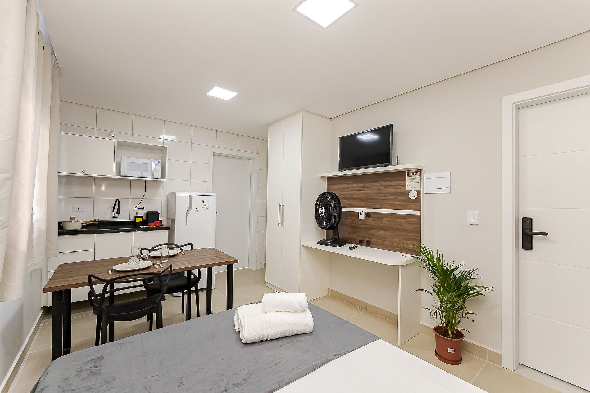 Studio moderno, bem iluminado e com layout integrado, ideal para até 2 hóspedes.