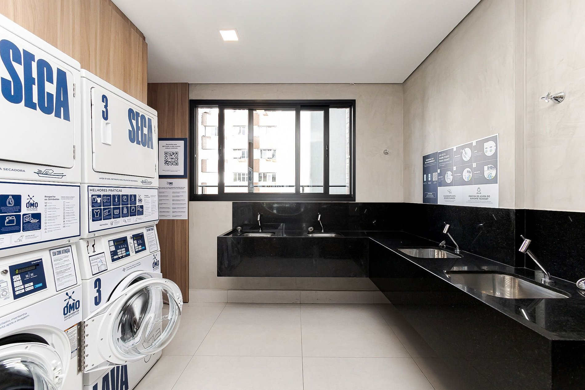 • Lavanderia OMO automatizada (19º andar, 24h — pagamento via app)