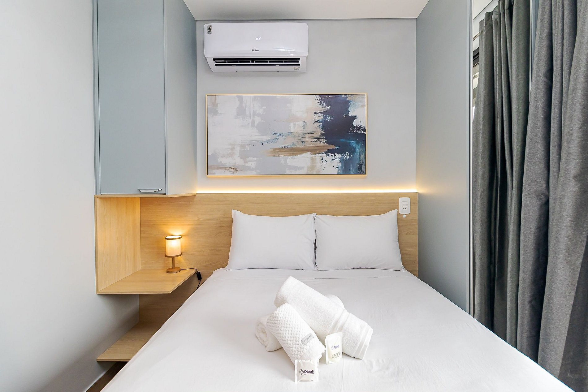 A mobília de alto padrão combina modernidade e aconchego. Cama confortável e acabamento de qualidade.