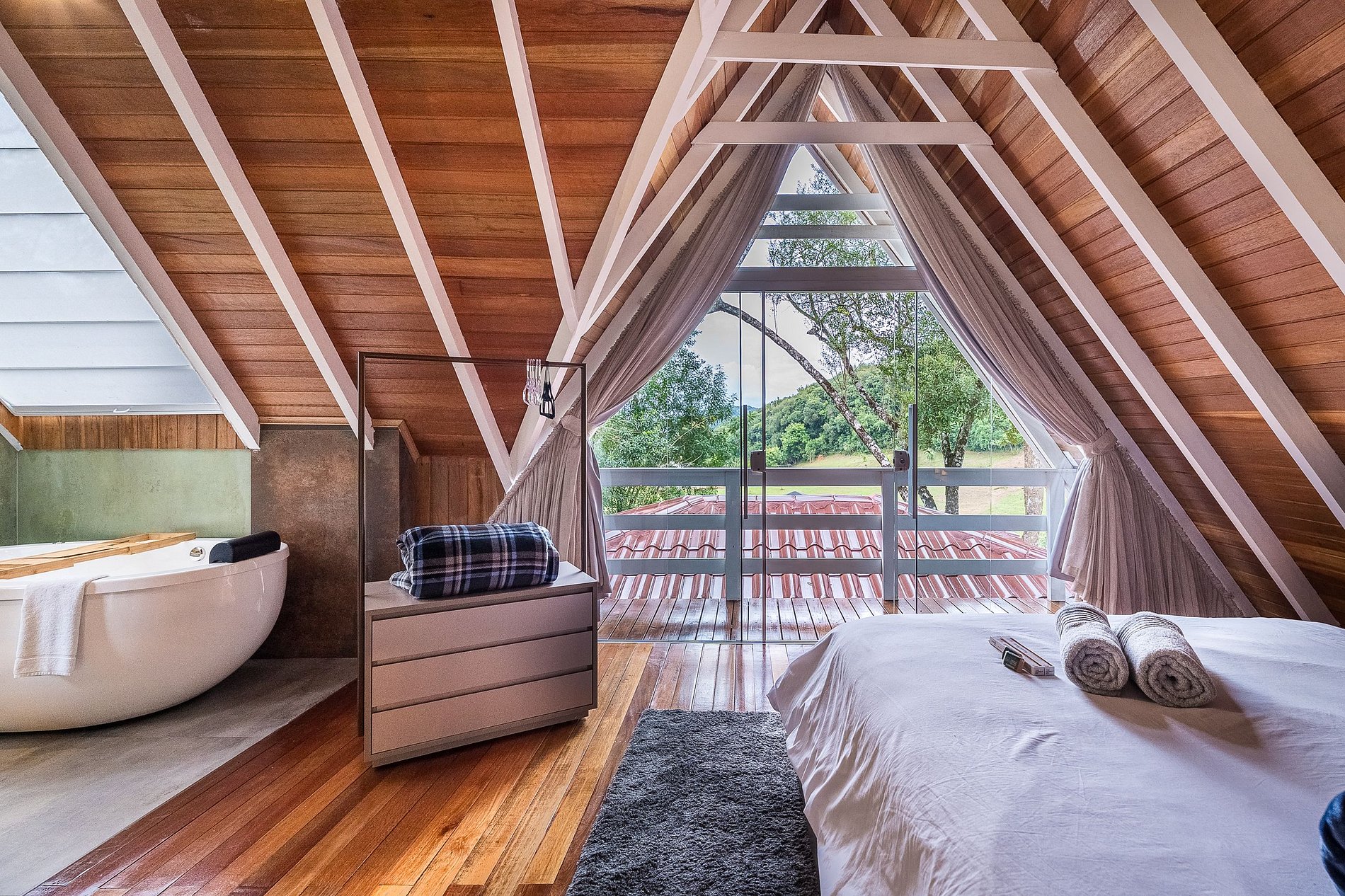• Banheira Sob as Estrelas: Nossa banheira com vista para o céu noturno é o lugar perfeito para momentos de tranquilidade e relaxamento.