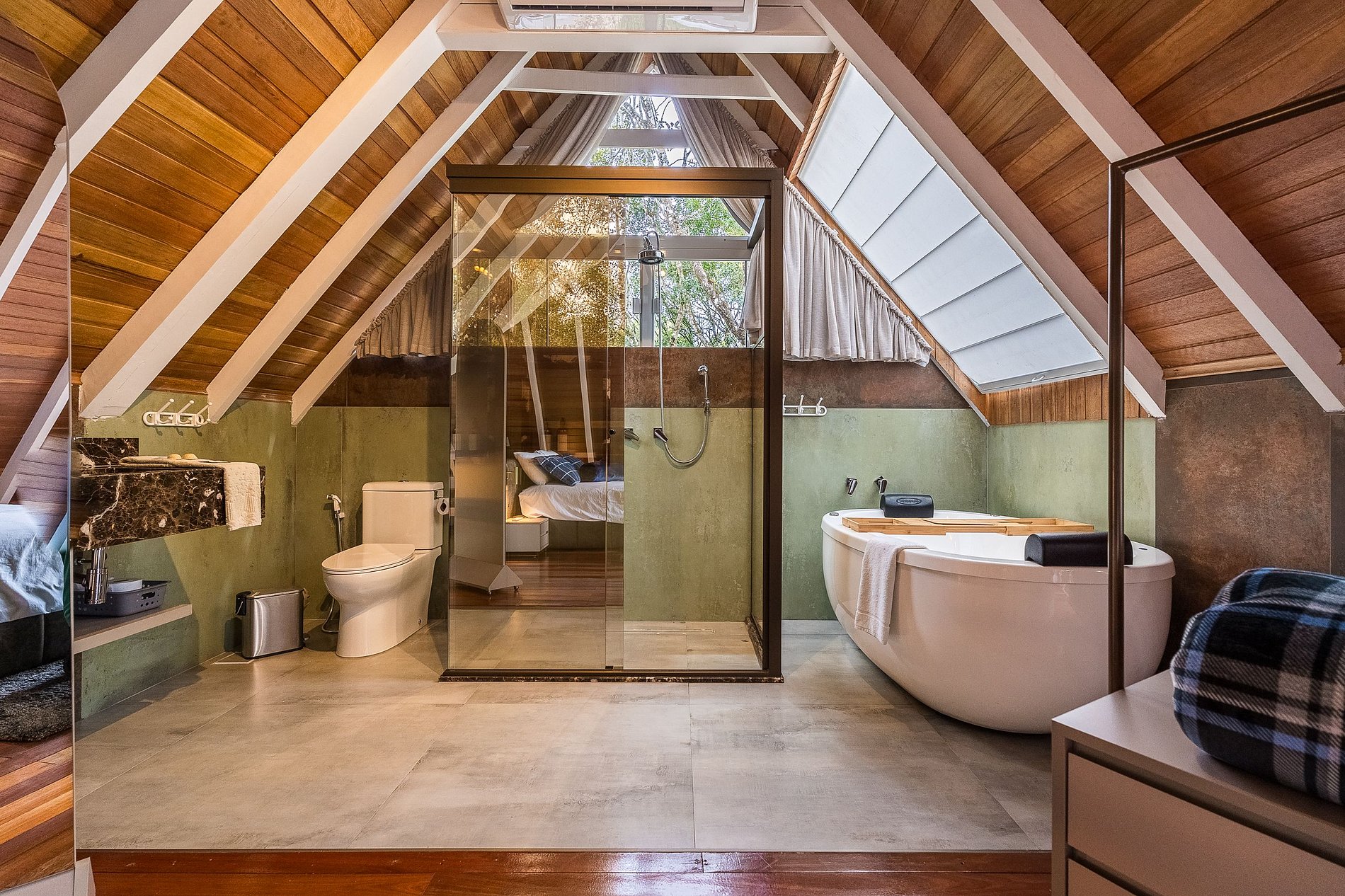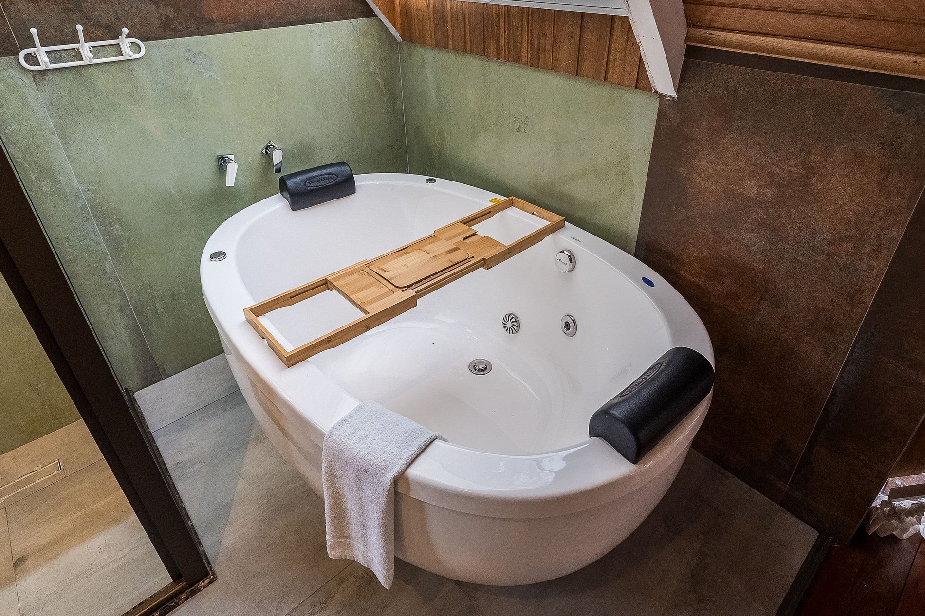 • Banheira Sob as Estrelas: Nossa banheira com vista para o céu noturno é o lugar perfeito para momentos de tranquilidade e relaxamento.