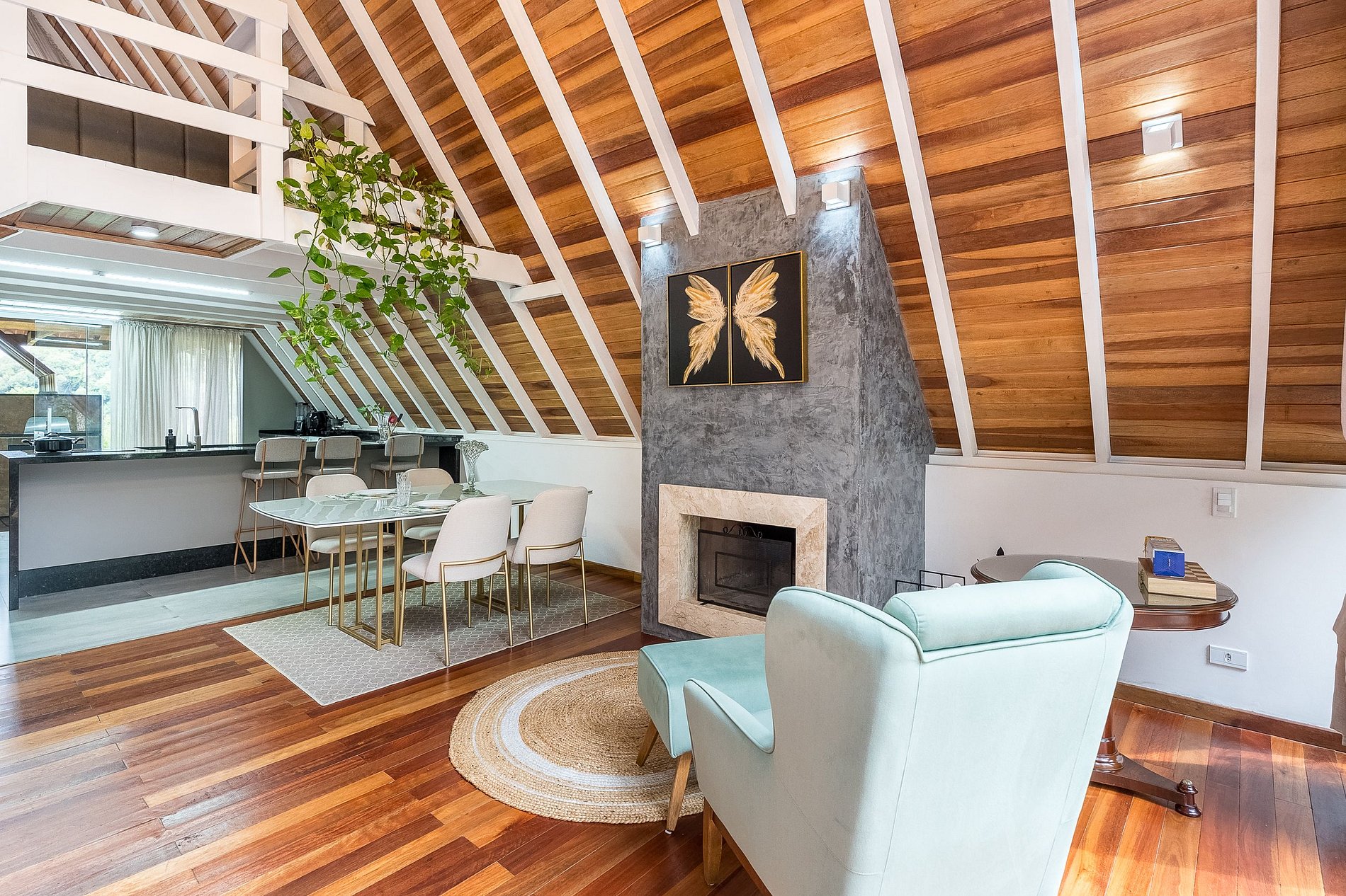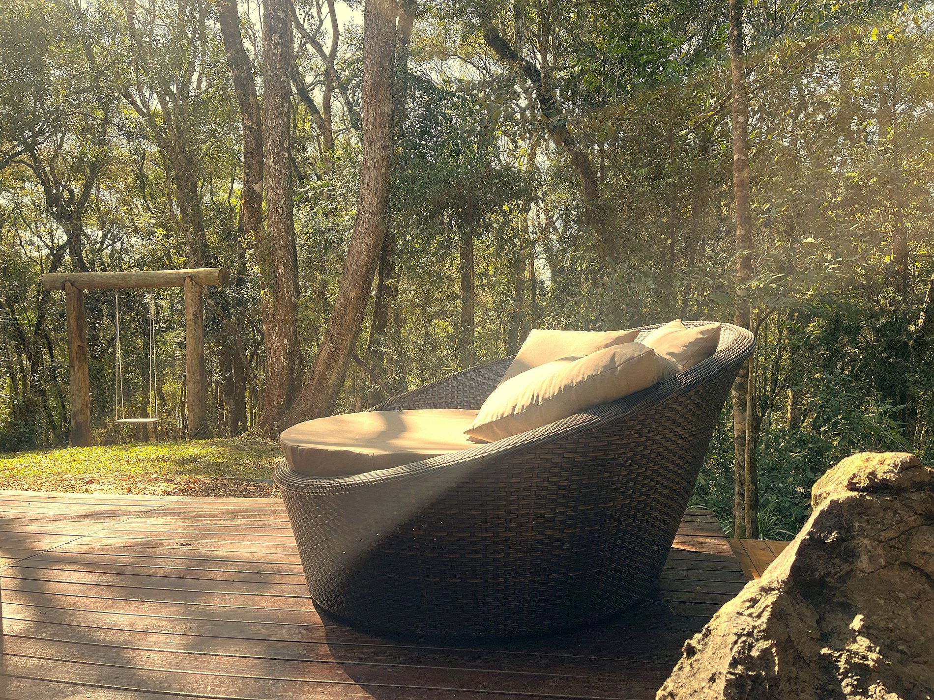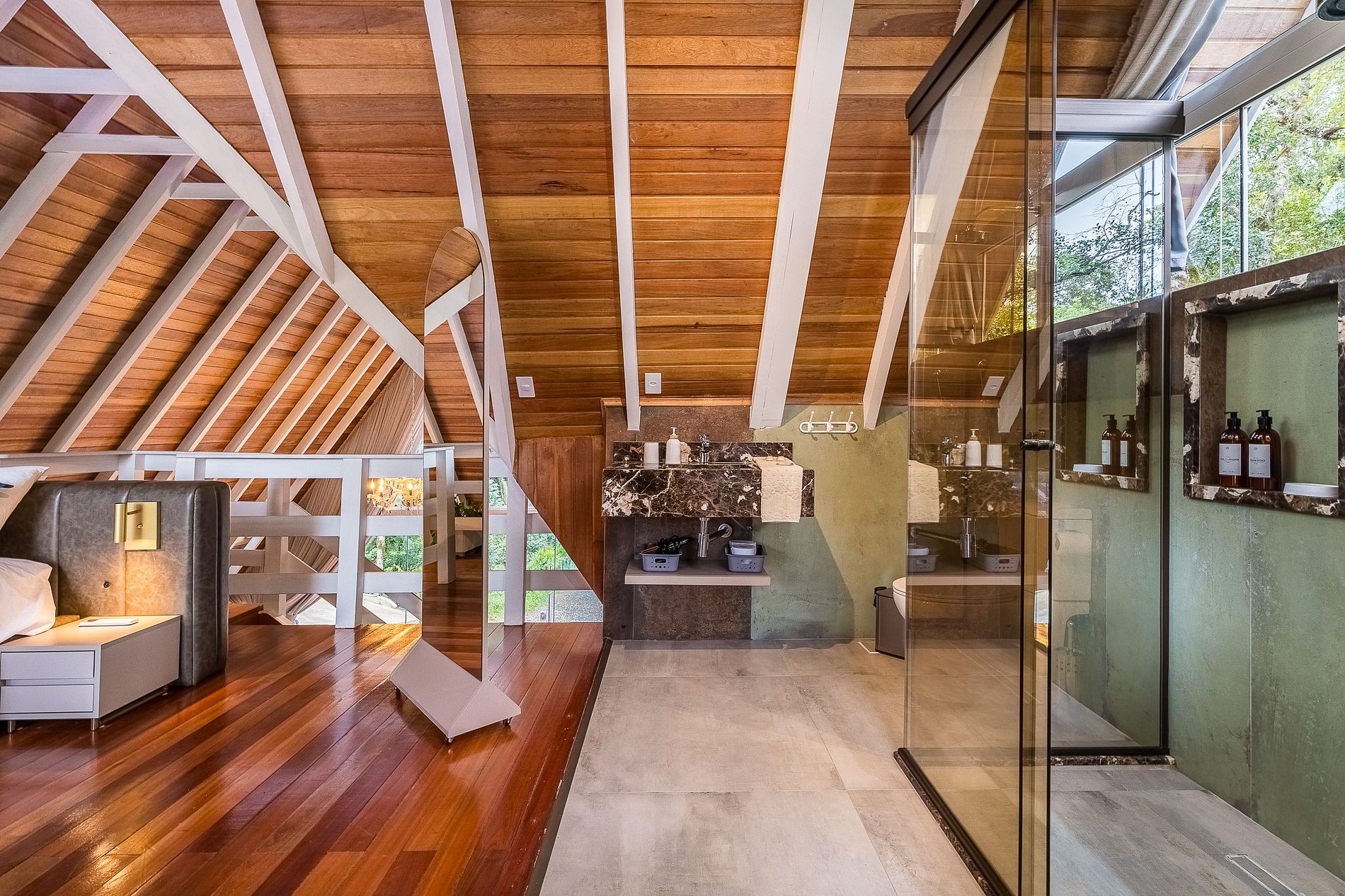Fuja da agitação da cidade e mergulhe neste ambiente de natureza exuberante. Com móveis de alta qualidade e uma deslumbrante banheira com vista para as estrelas à noite, cada momento nesta propriedade será uma experiência premium que você merece