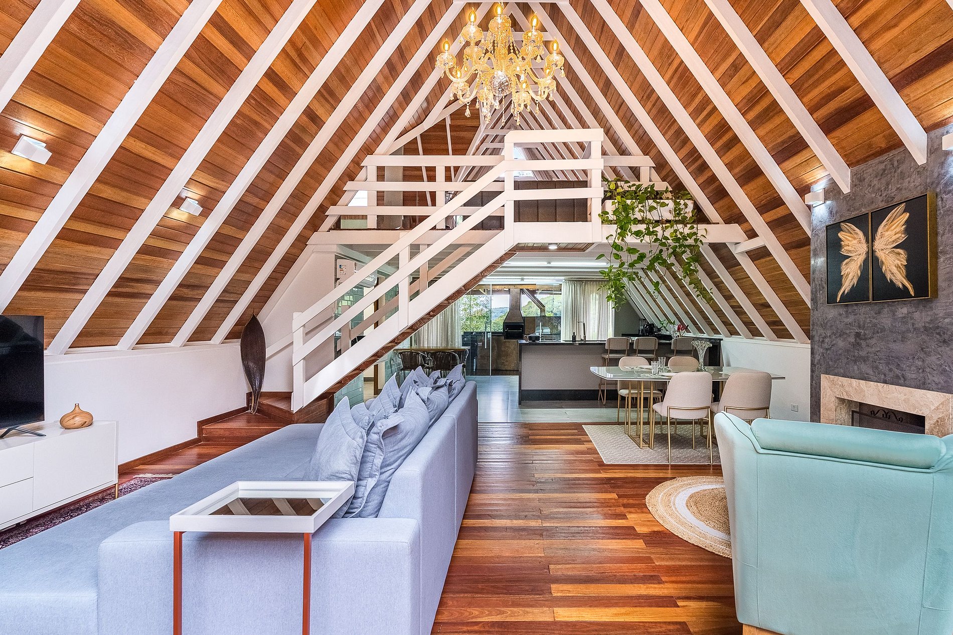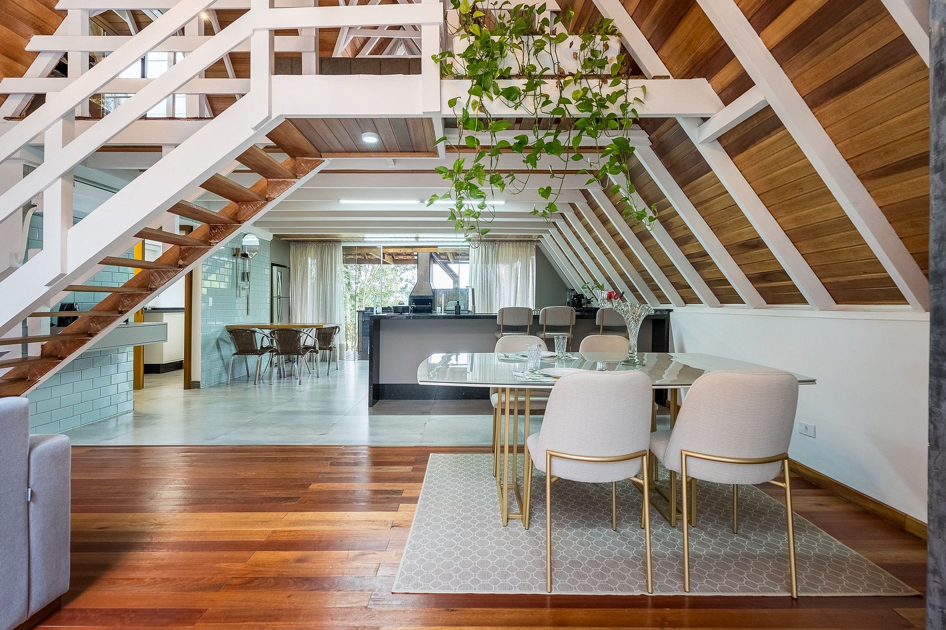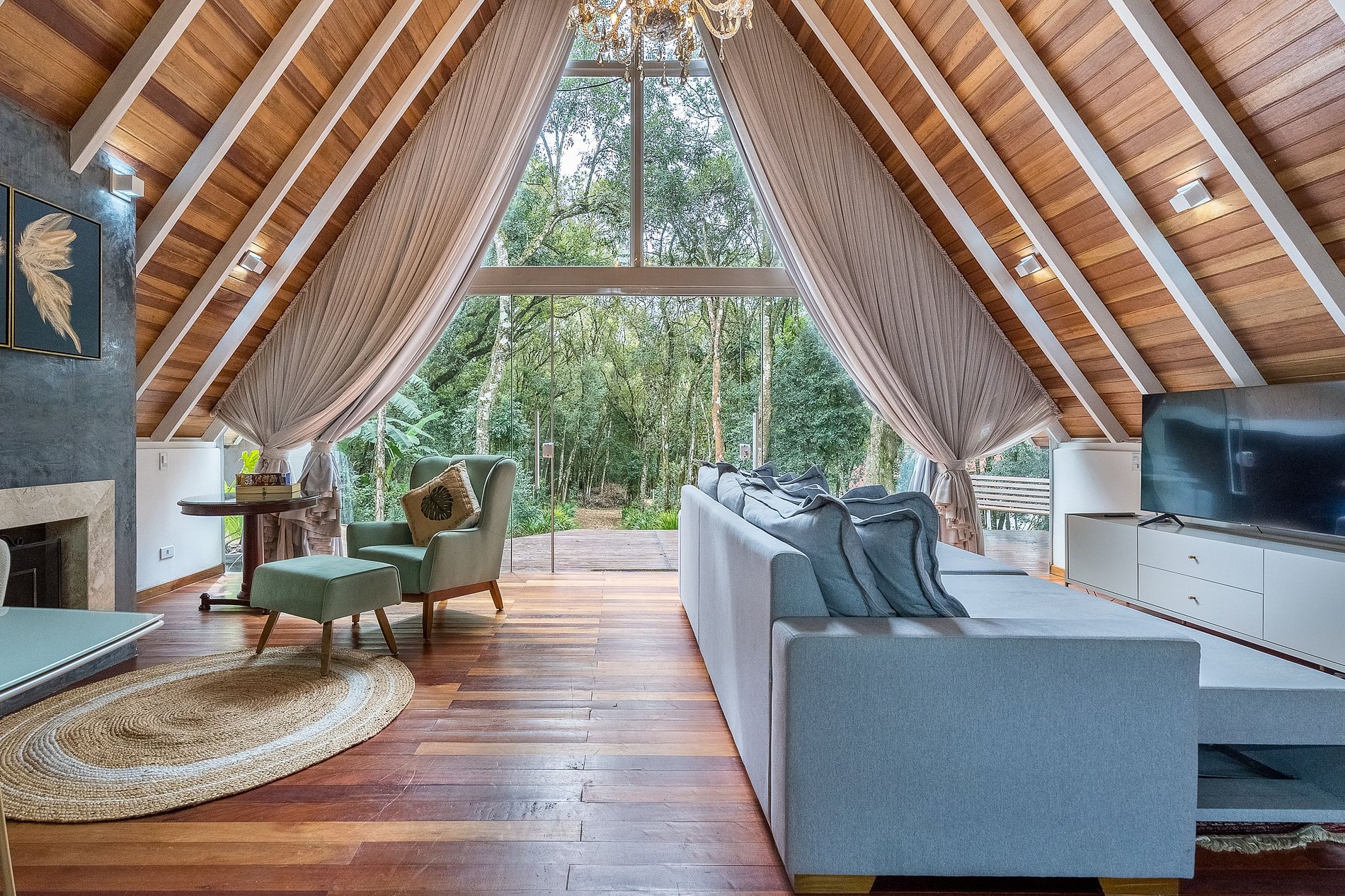 • Natureza Exuberante: Cercado por uma vasta área verde, o chalé oferece total privacidade e vistas espetaculares. Desfrute dos nasceres e pores do sol de tirar o fôlego através das grandes fachadas envidraçadas!