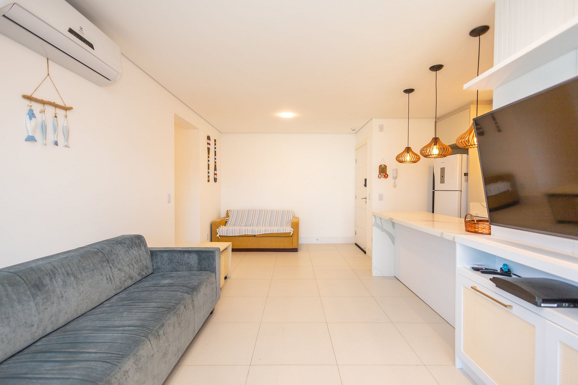 Com 100 m², acomoda até 4 hóspedes com conforto, contando com sala integrada à varanda com churrasqueira, cozinha equipada, 2 quartos e 2 banheiros.