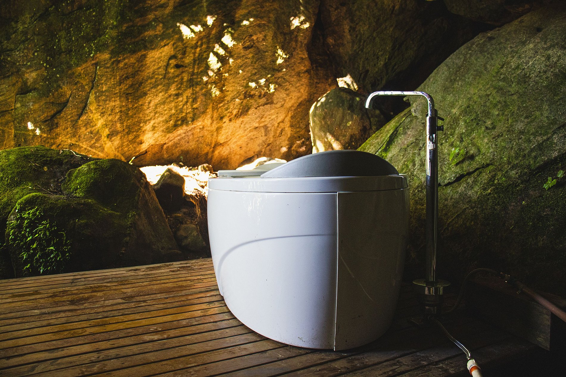 Banheira Sensacional com Água Quente: Localizada dentro de uma gruta natural, proporcionando uma experiência inesquecível.