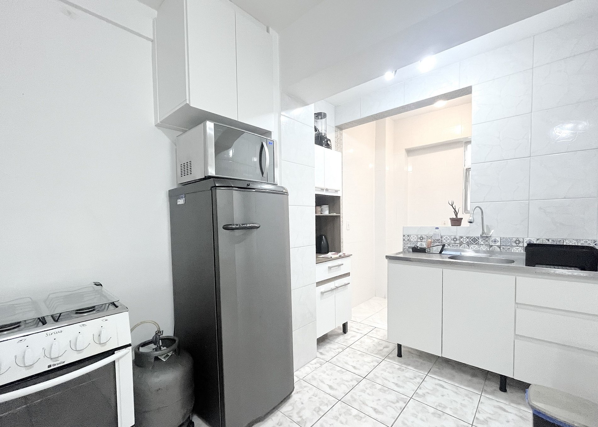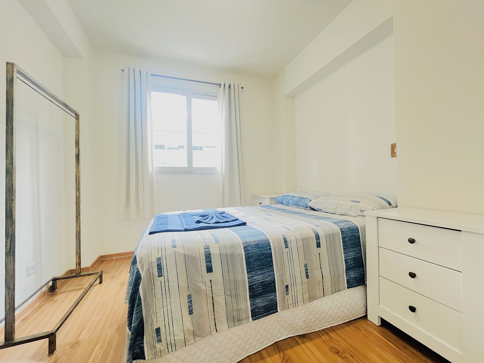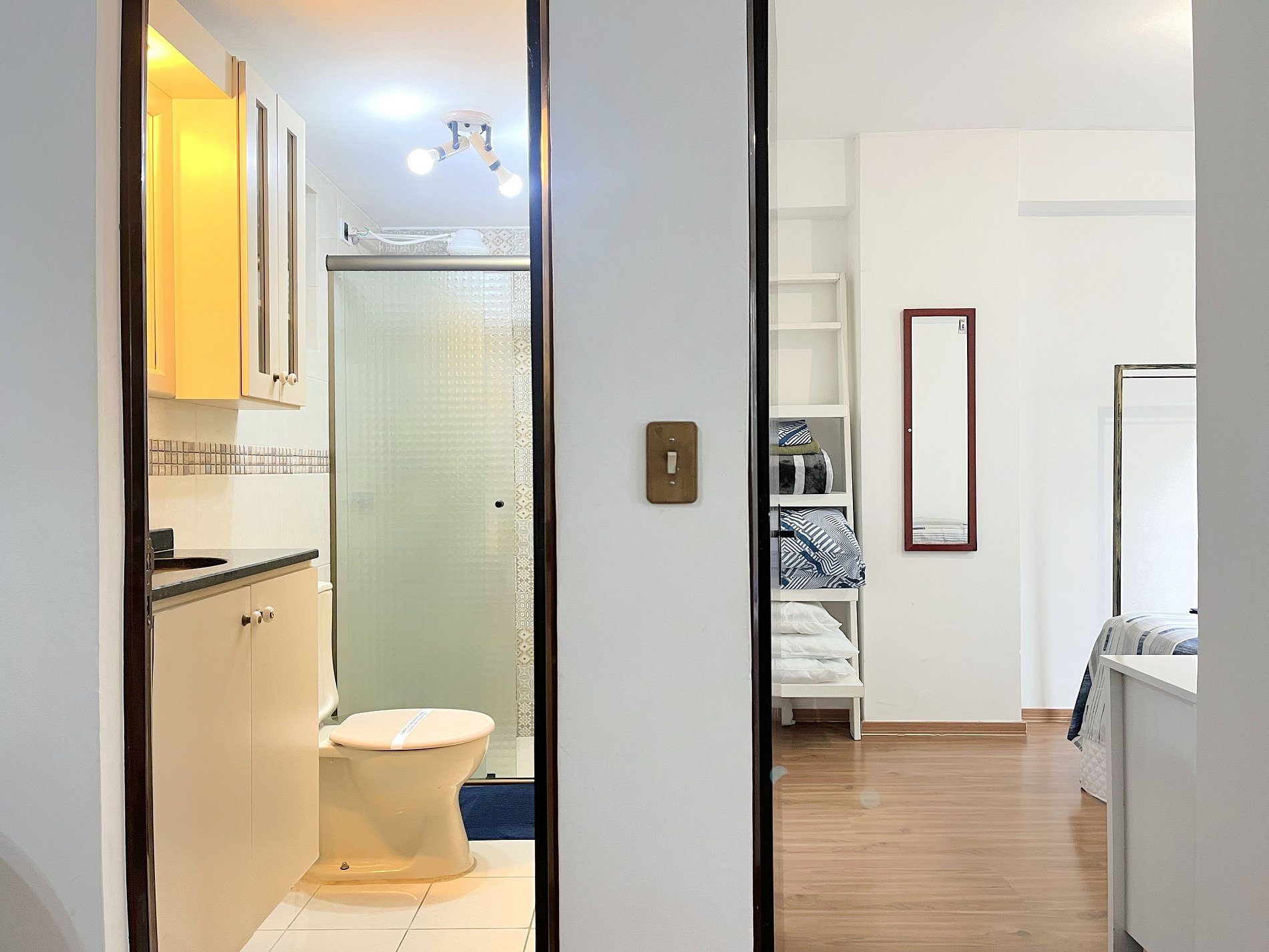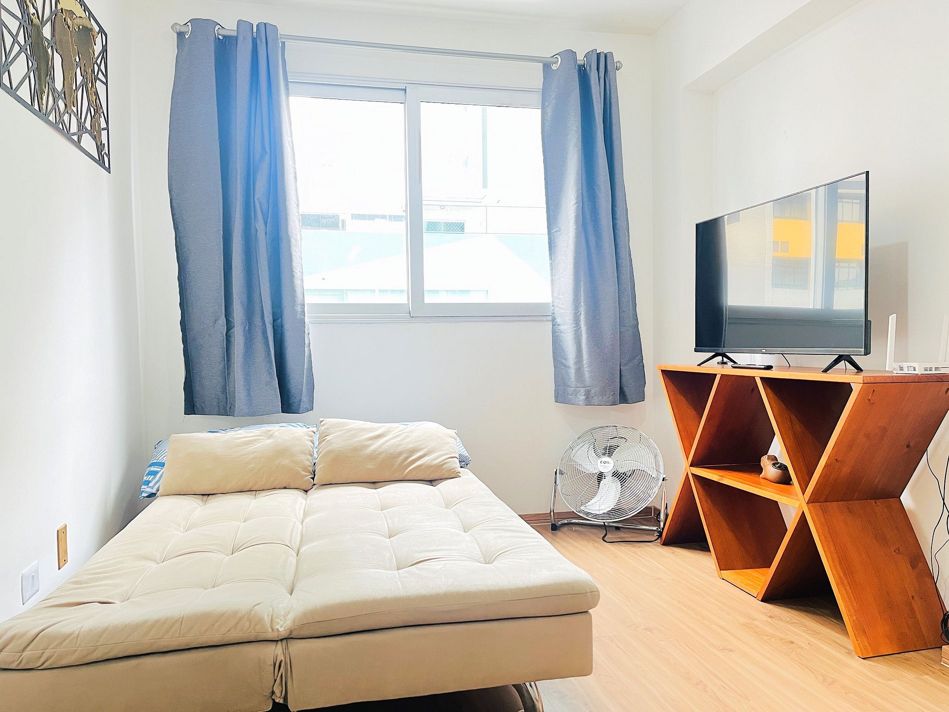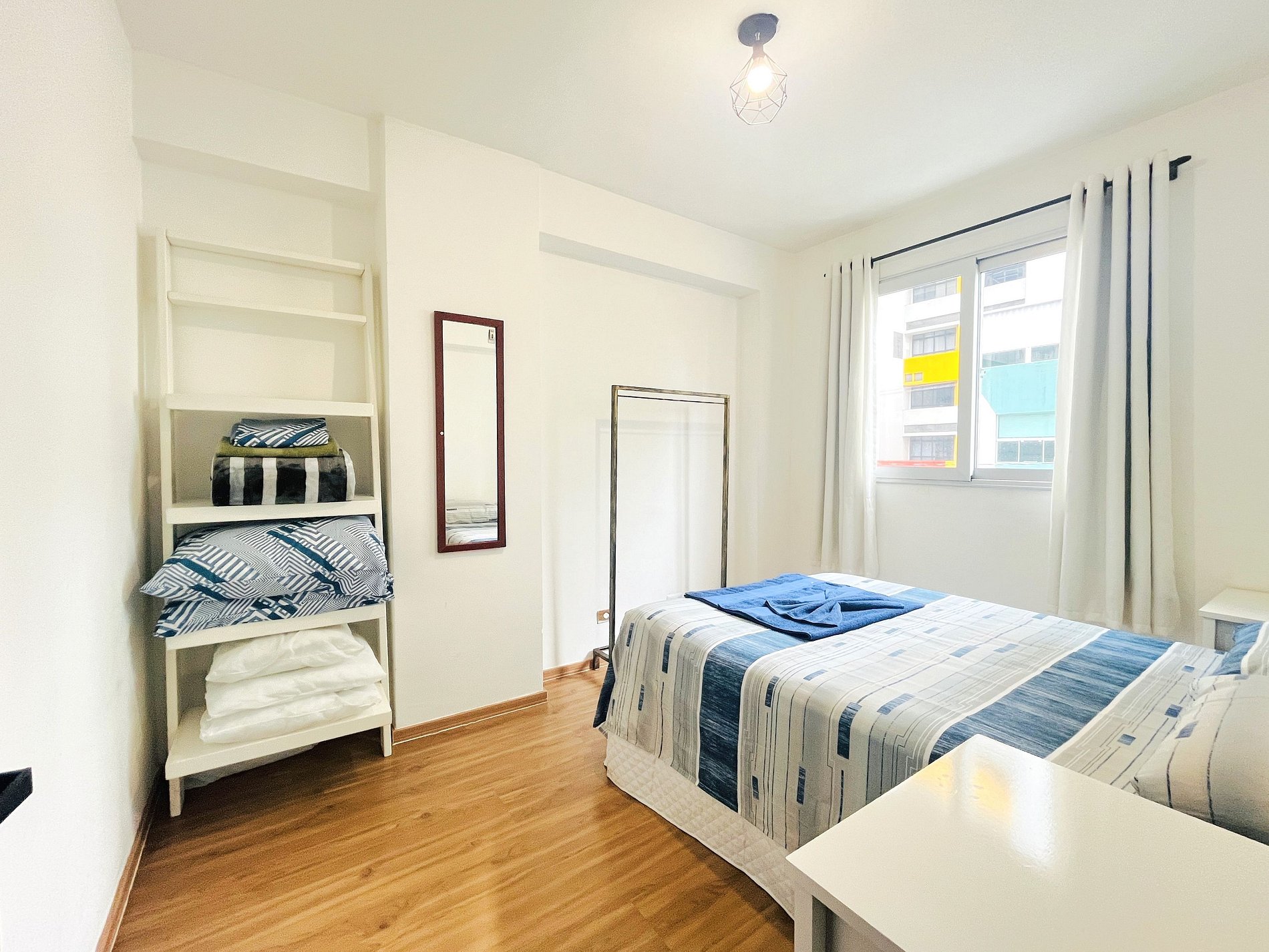 Dispõe de quarto amplo com cama aconchegante e janela anti-ruído, cozinha completa e máquina de lavar. Ideal para quem busca praticidade e tranquilidade em uma localização privilegiada, com fácil acesso a lojas, restaurantes e serviços.