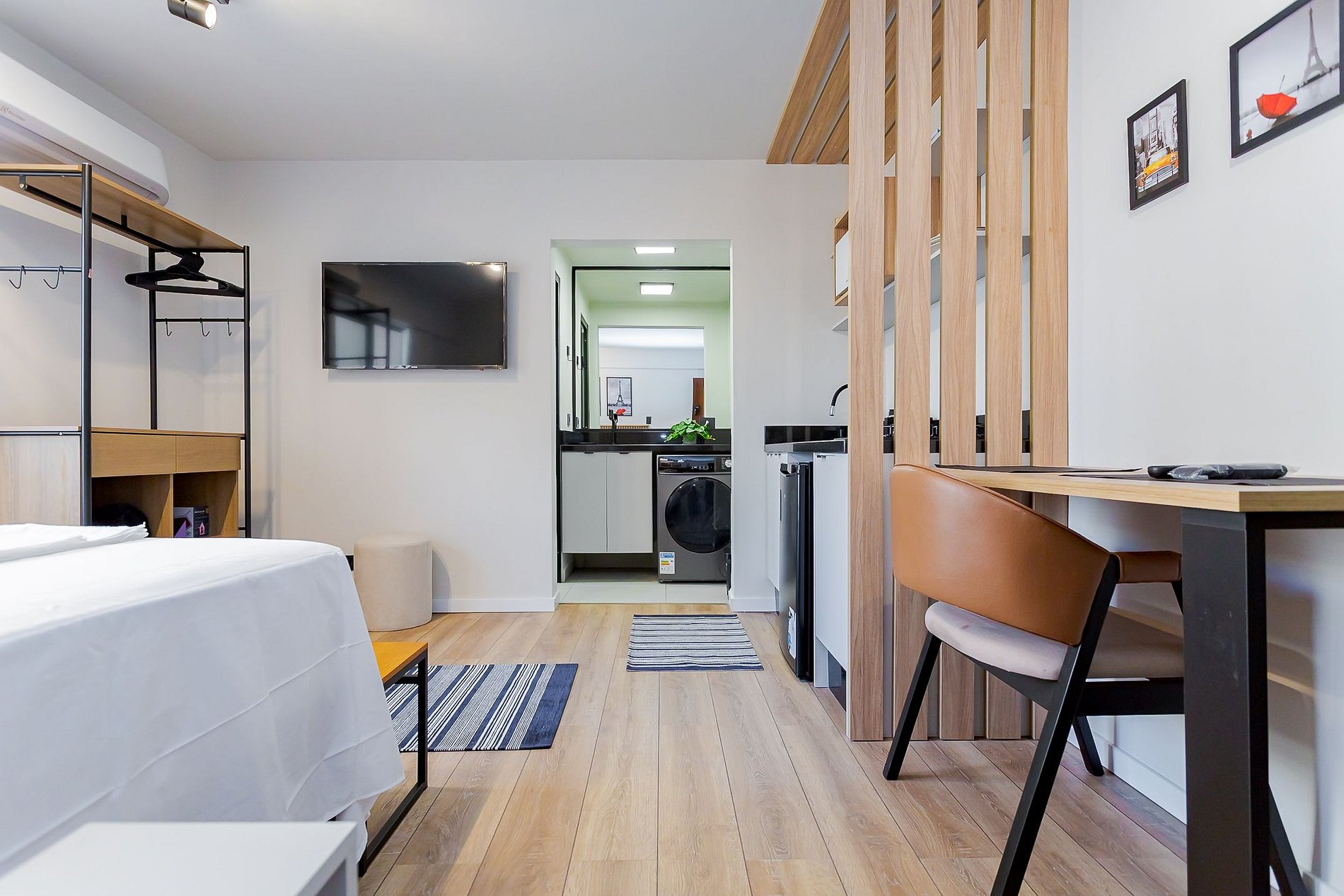 Se hospede no lugar mais cômodo de Curitiba e desfrute de um quarto super confortável e aconchegante, cozinha completa e uma localização privilegiada, a poucos passos das principais atrações!