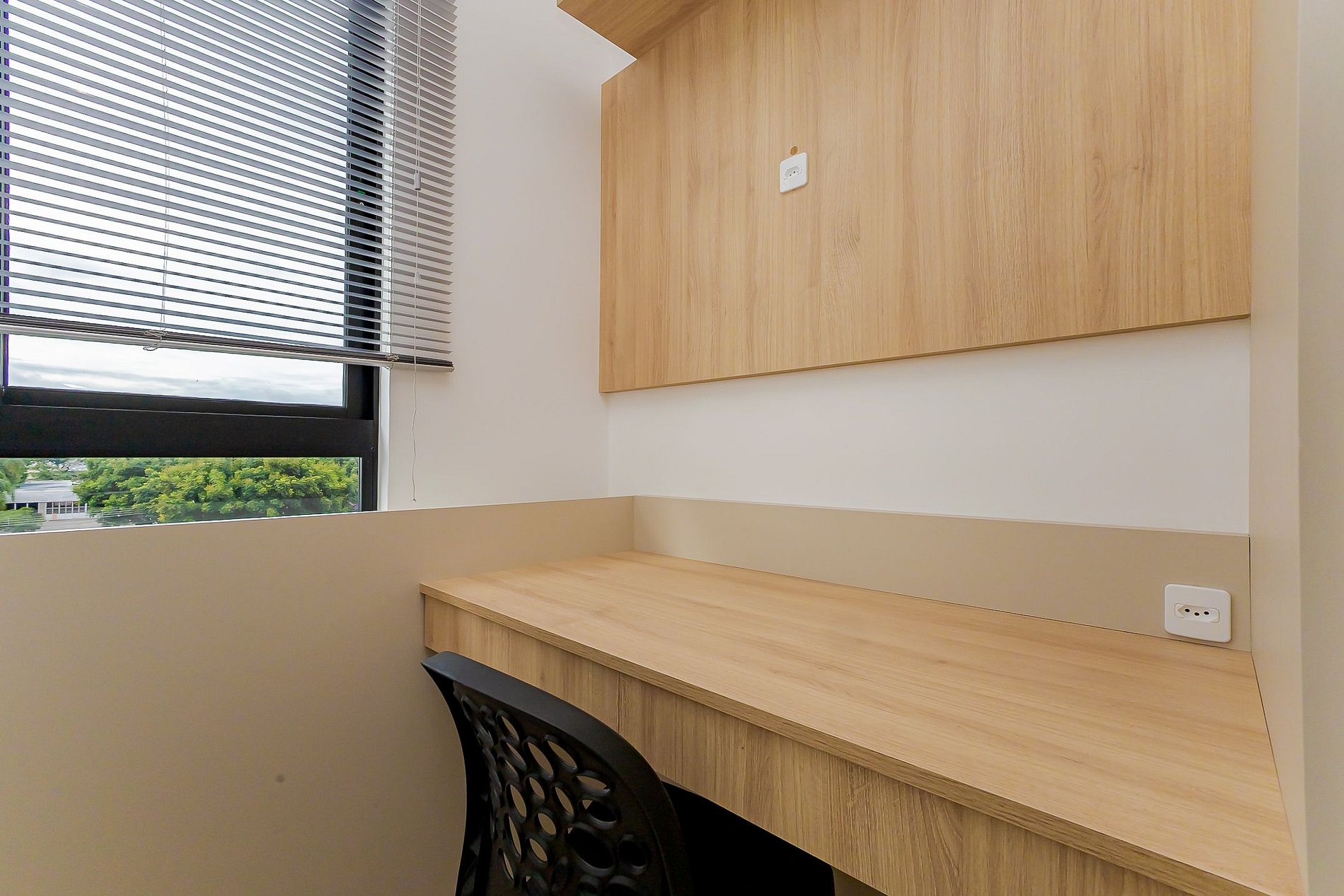 • O segundo quarto conta com uma cama de solteiro, ventilador de coluna, armário e um espaço ideal para trabalho remoto, proporcionando ainda mais conforto e funcionalidade.