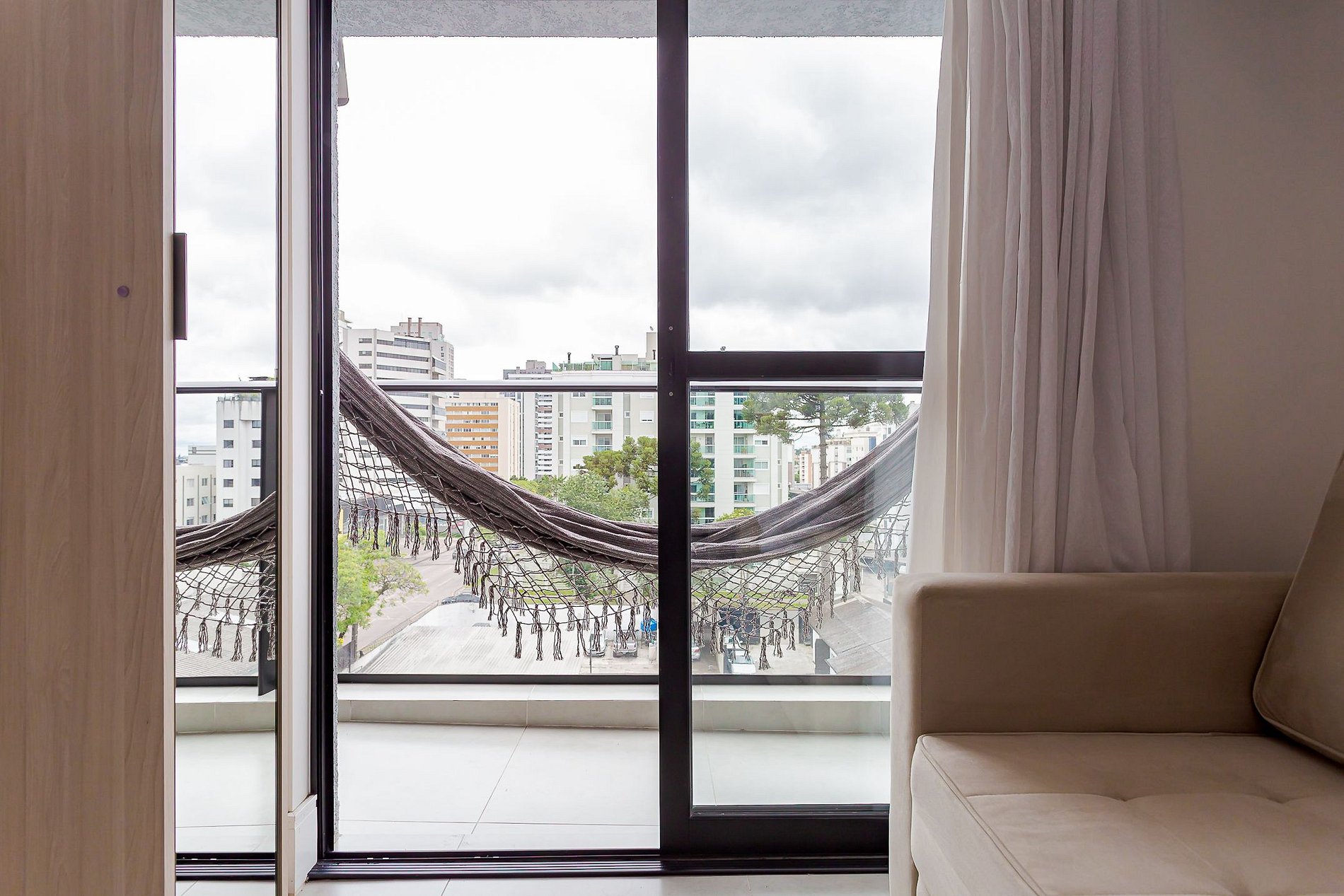 • A varanda com rede de descanso é o espaço ideal para relaxar, aproveitar a vista e tornar sua estadia ainda mais especial.