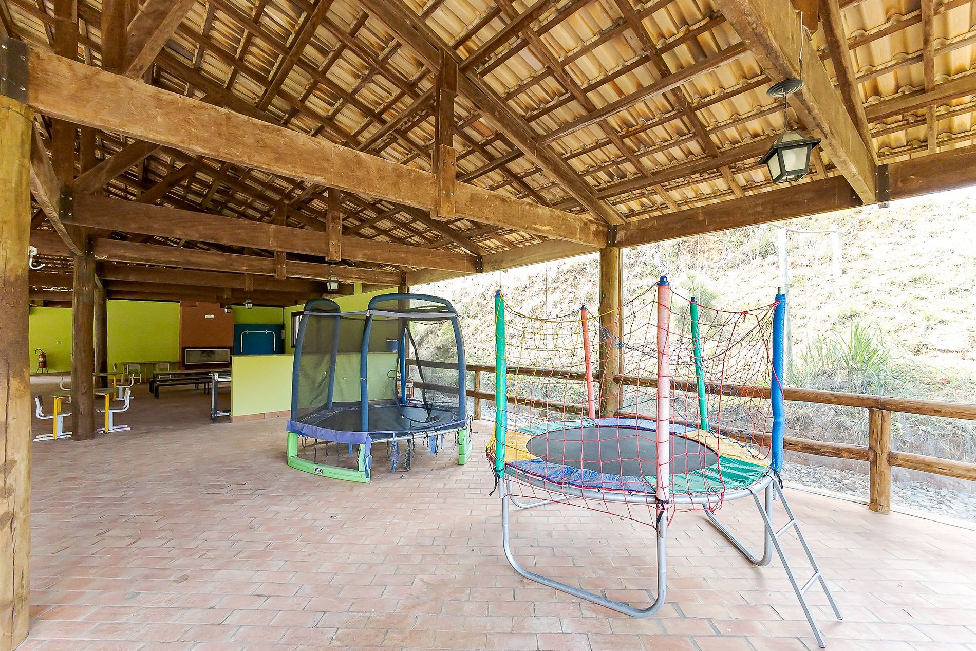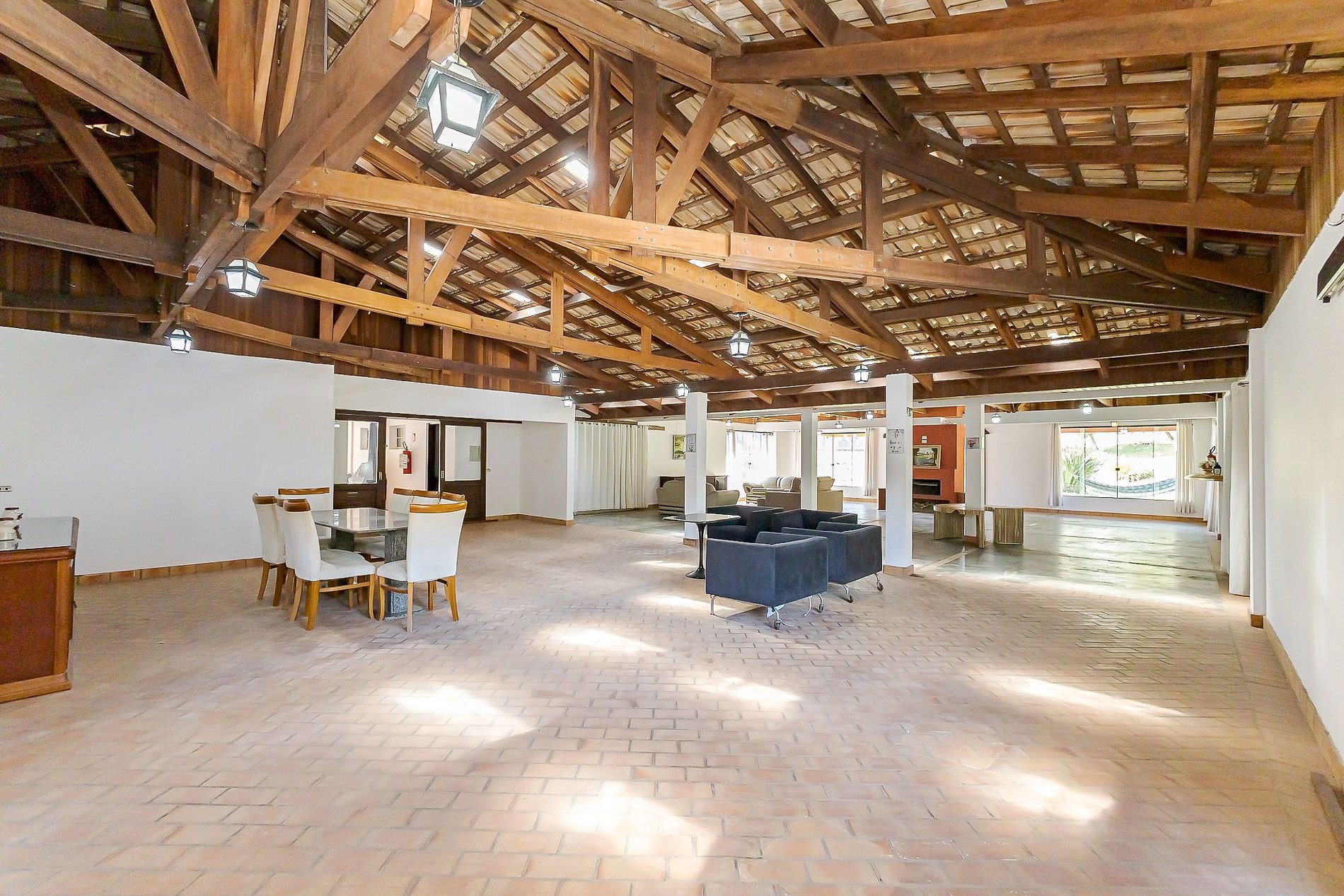 A cozinha industrial está totalmente equipada, facilitando a preparação de refeições para grandes grupos. Com uma área verde que se estende por mais de 40 mil metros quadrados, esta propriedade oferece um amplo espaço para explorar e relaxar. A casa em si tem mais de 400 metros quadrados de área, proporcionando muito espaço para todos se sentirem à vontade.