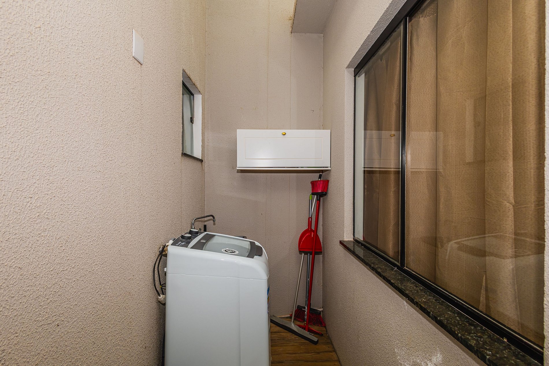 • Lavanderia com máquina de lavar e tanque.