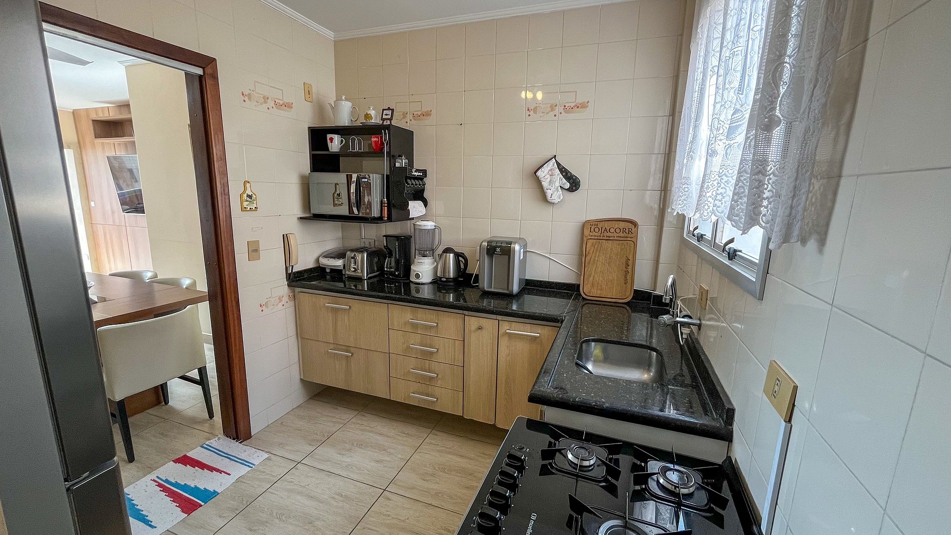 A cozinha é totalmente equipada e a churrasqueira na sacada interna oferece um ambiente acolhedor e ideal para momentos de lazer.