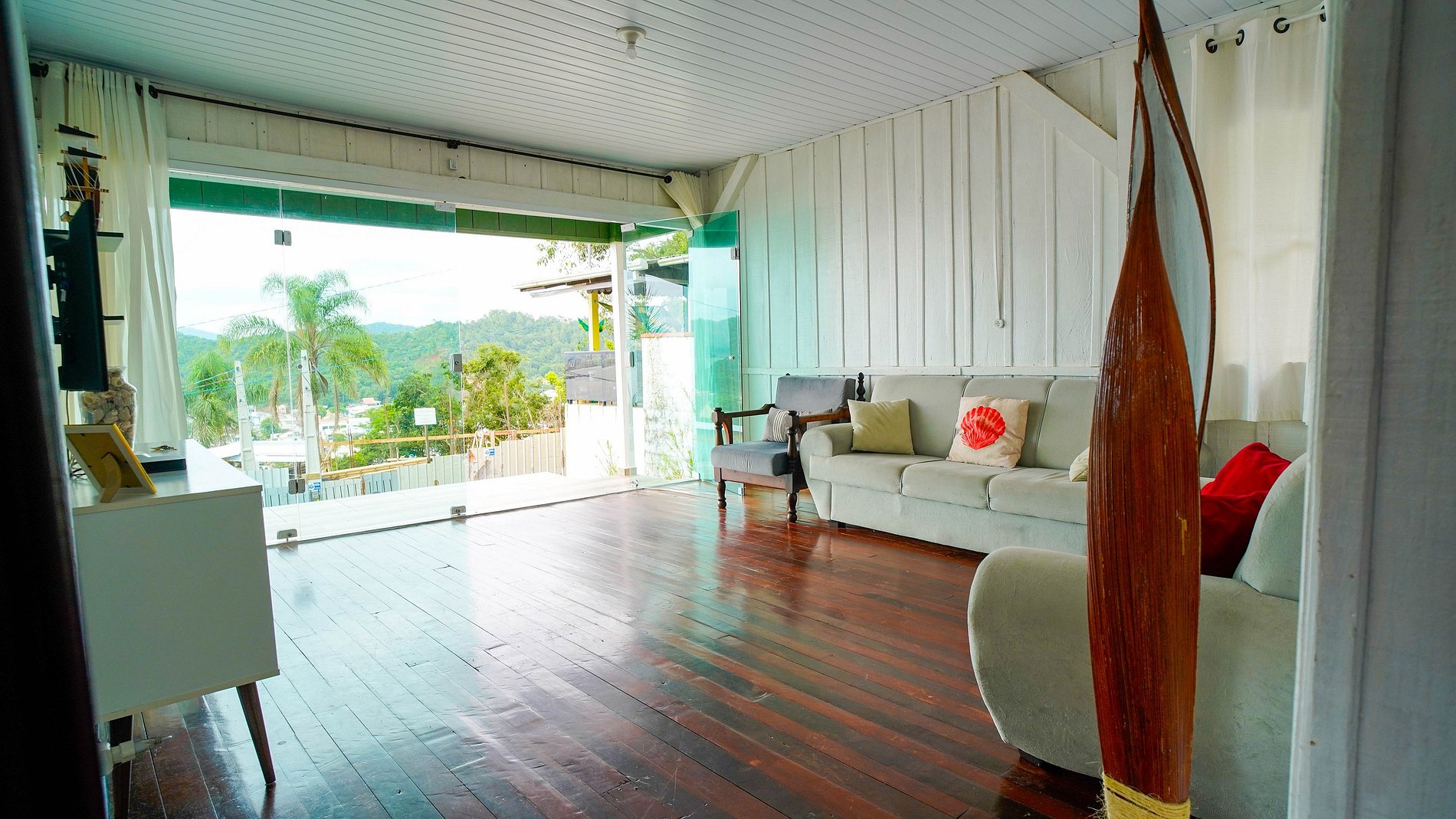 Casa espaçosa com vista deslumbrante para o mar, localizada no alto de um morro em Penha.