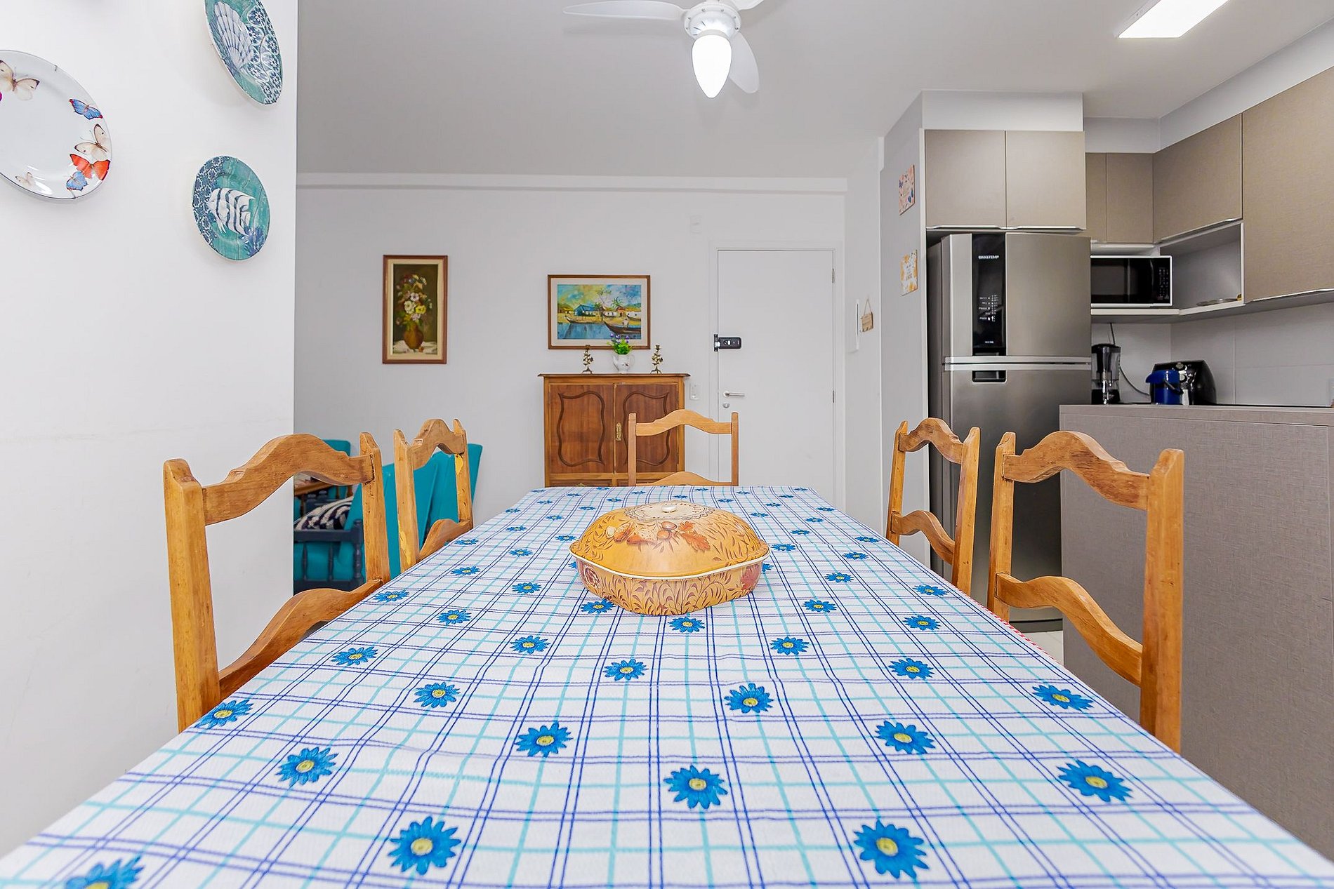 Sala e cozinha integradas, espaço gourmet com churrasqueira, Wi-Fi de 200mb, Smart TV e 2 quartos com ar-condicionado.