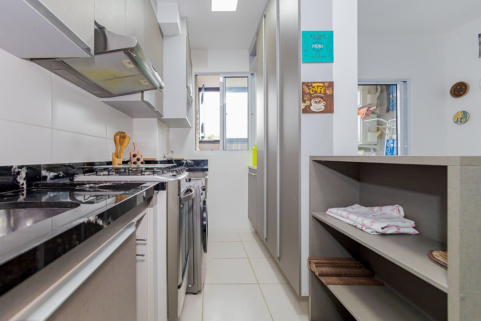 Cozinha completa, área de serviço com máquina de lavar. Condomínio com piscina, parquinho, quiosques e quadra.