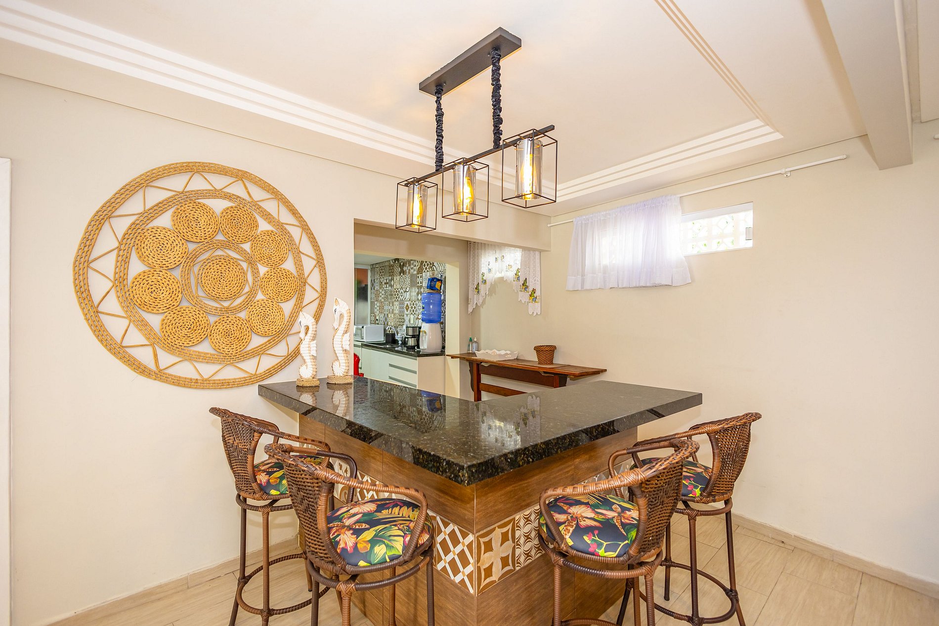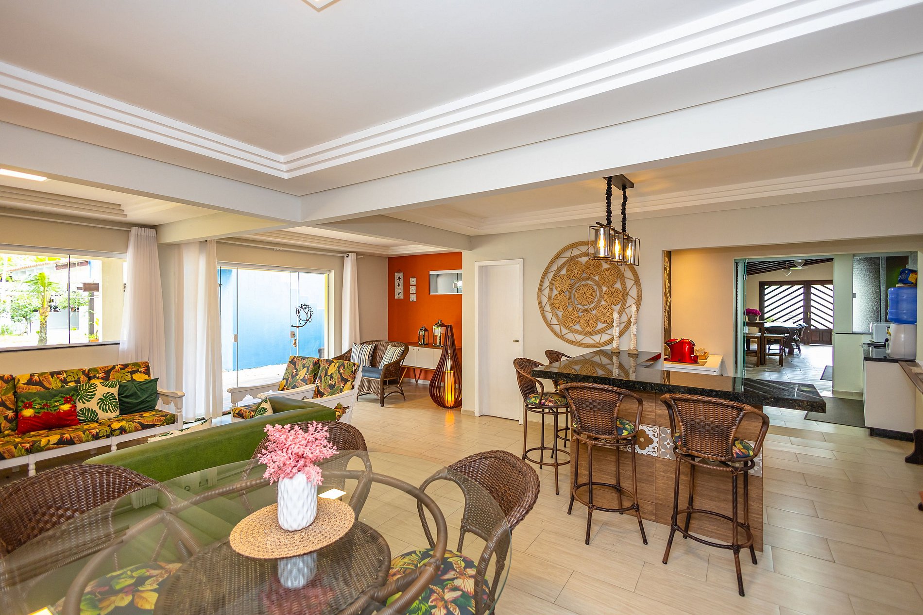 Com 4 quartos, incluindo 2 suítes com ar-condicionado, acomoda até 7 hóspedes com total comodidade. A sala ampla e aconchegante oferece sofás confortáveis, poltronas, mesa de jantar e TV para relaxar.