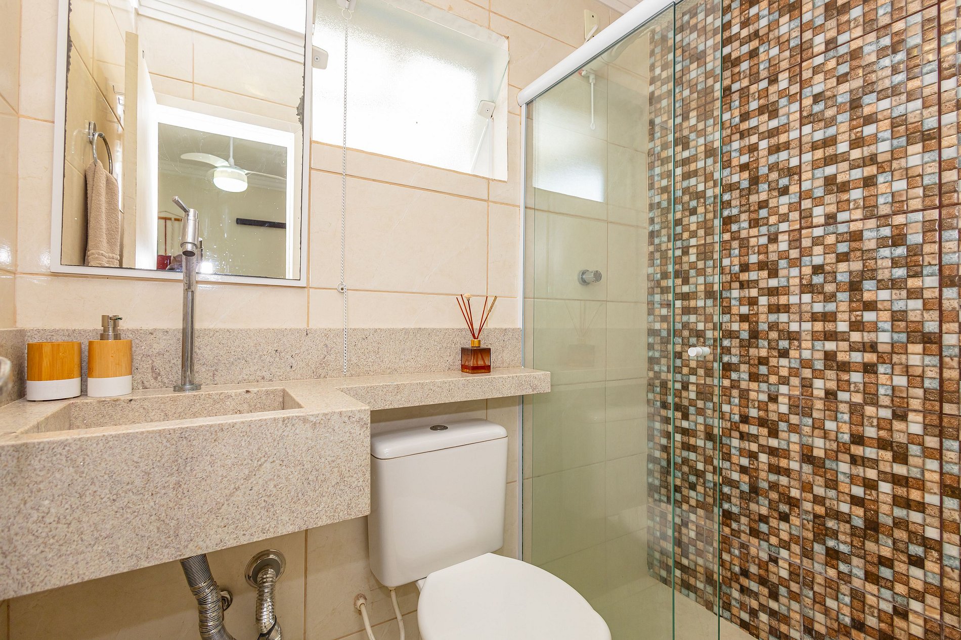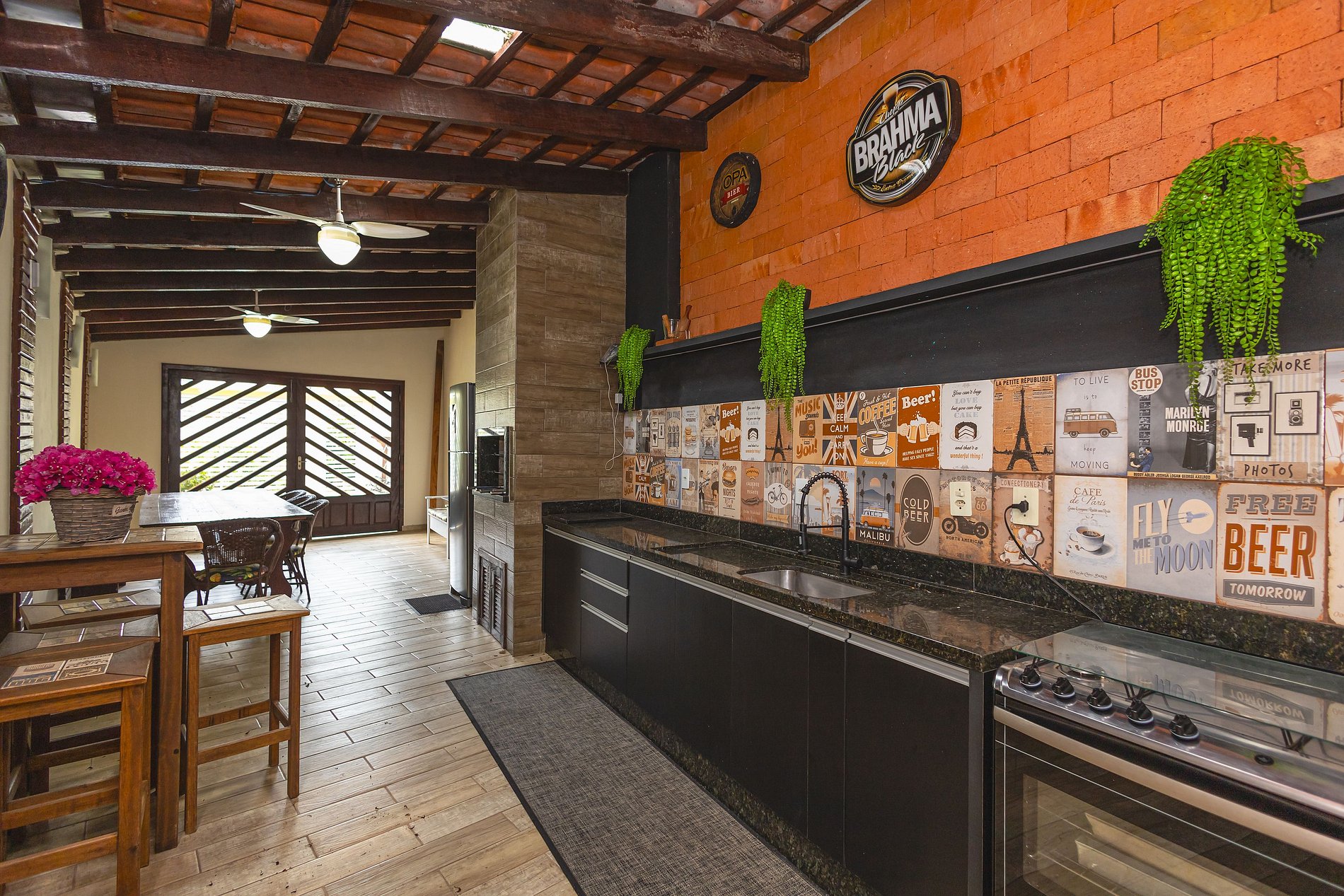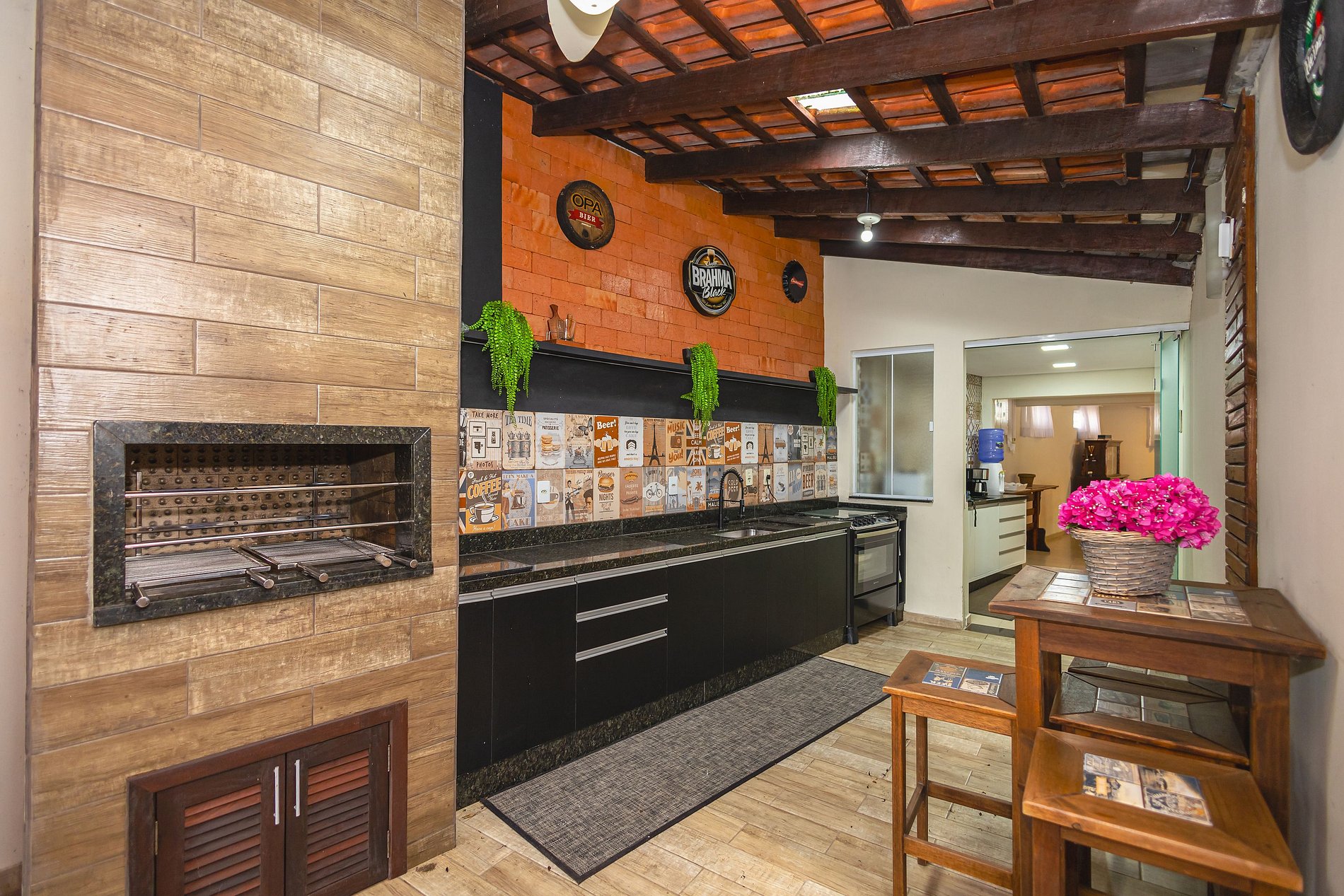 A cozinha completa e a área de churrasco equipada criam o ambiente ideal para refeições e encontros. Além disso, a casa conta com 4 banheiros para sua praticidade.