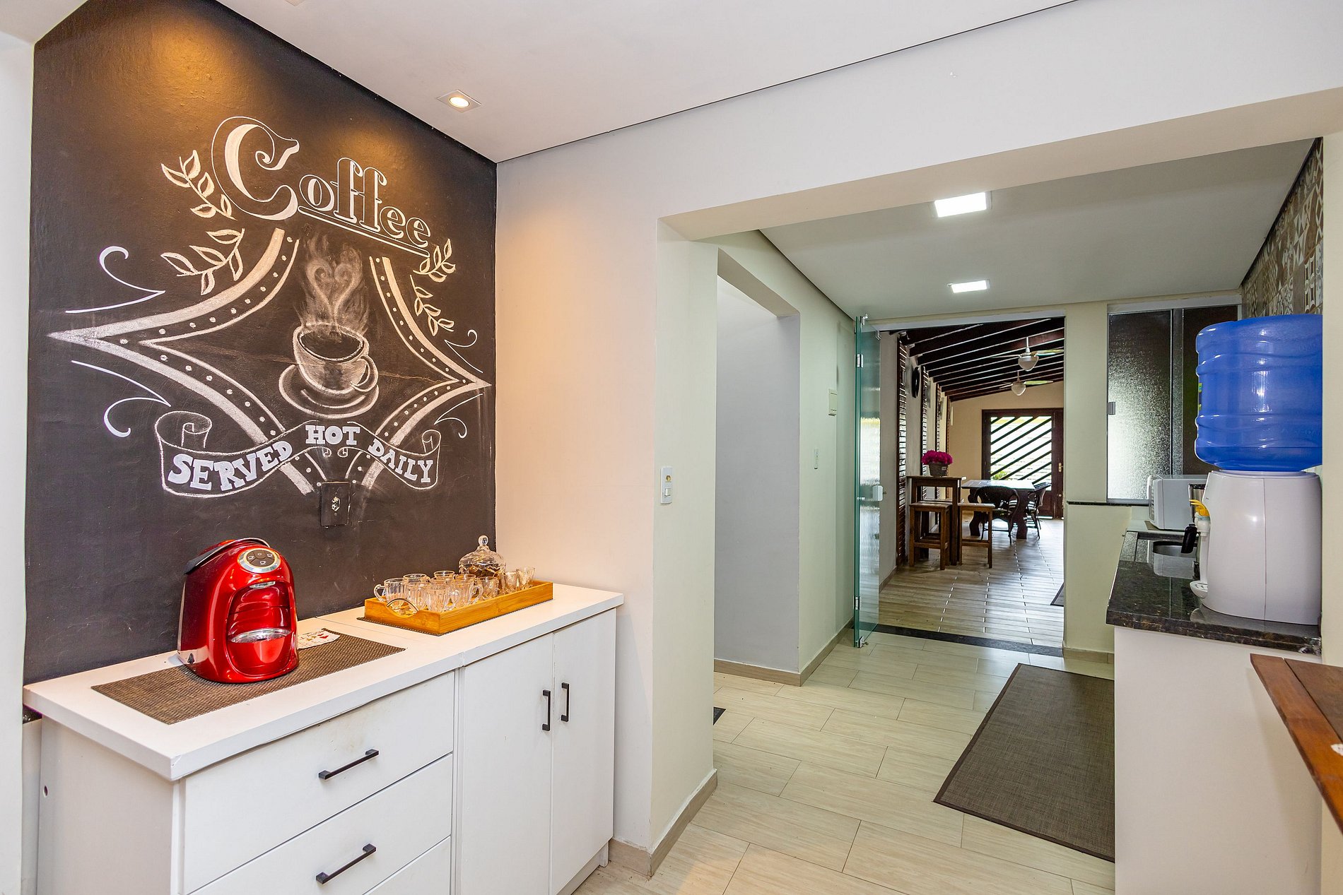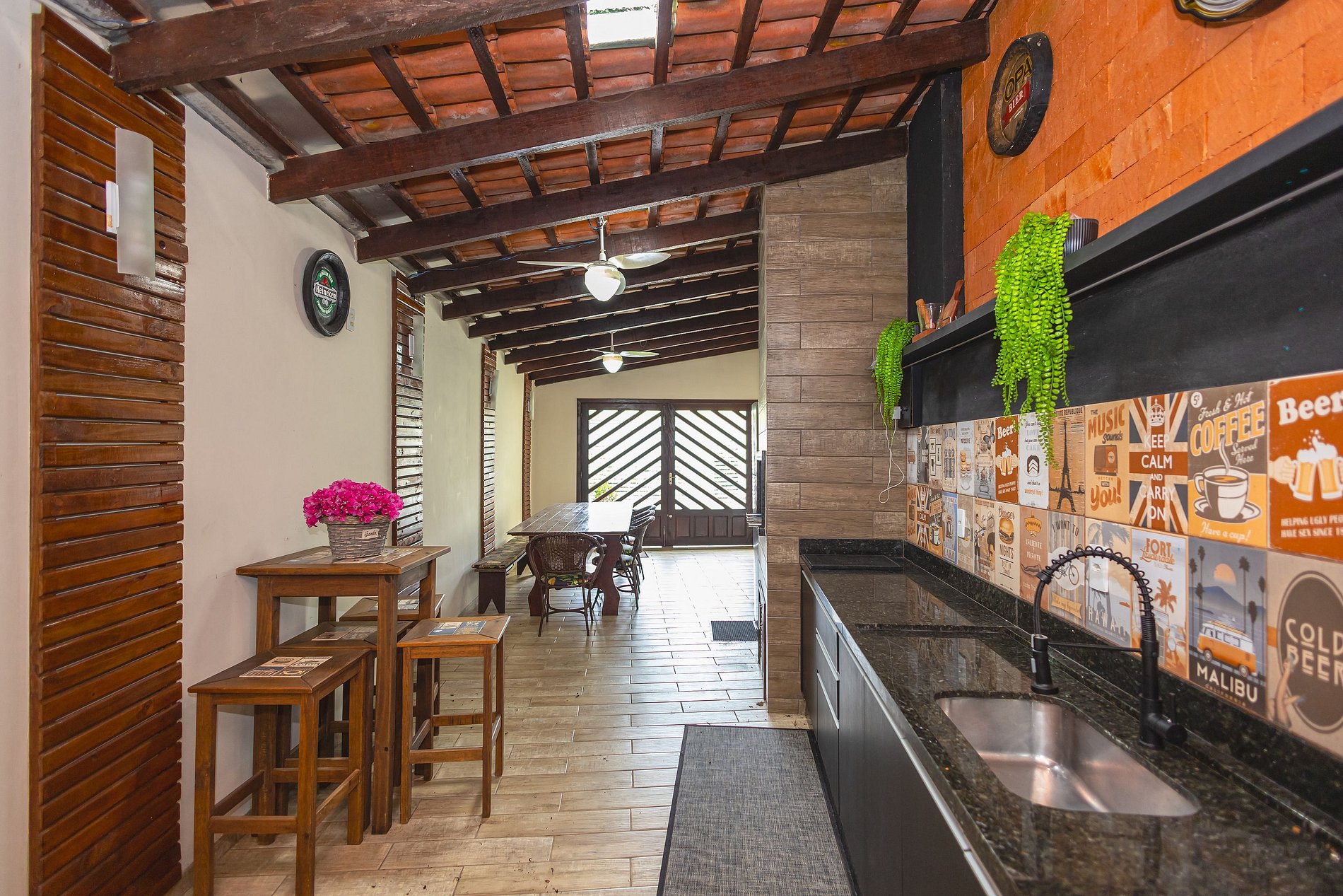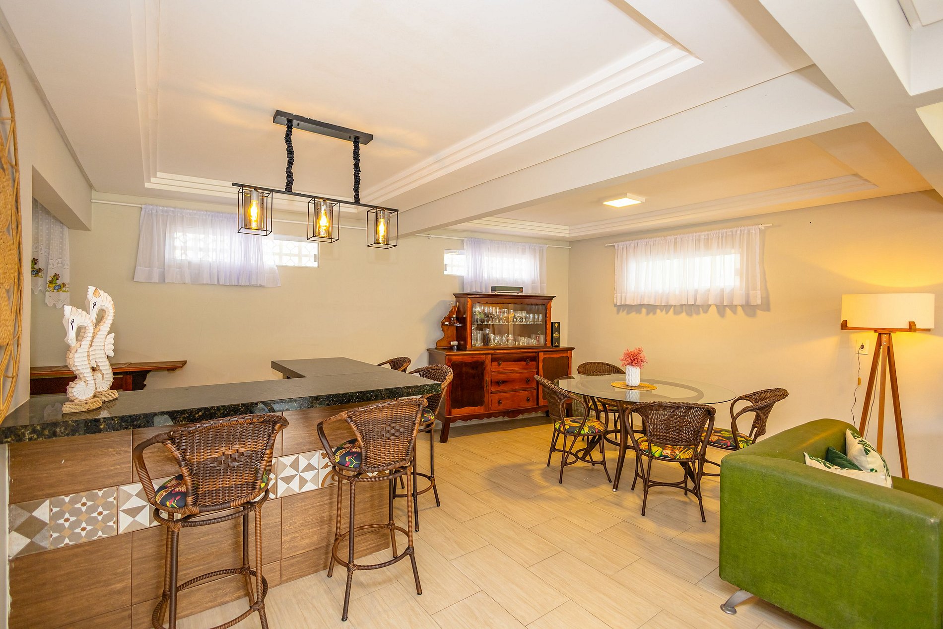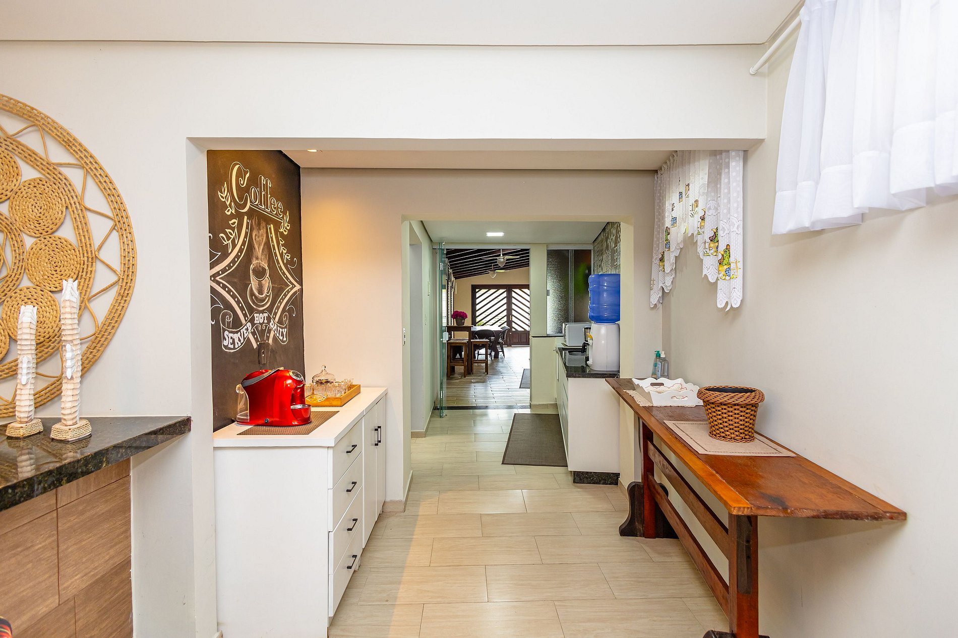A cozinha completa e a área de churrasco equipada criam o ambiente ideal para refeições e encontros. Além disso, a casa conta com 4 banheiros para sua praticidade.