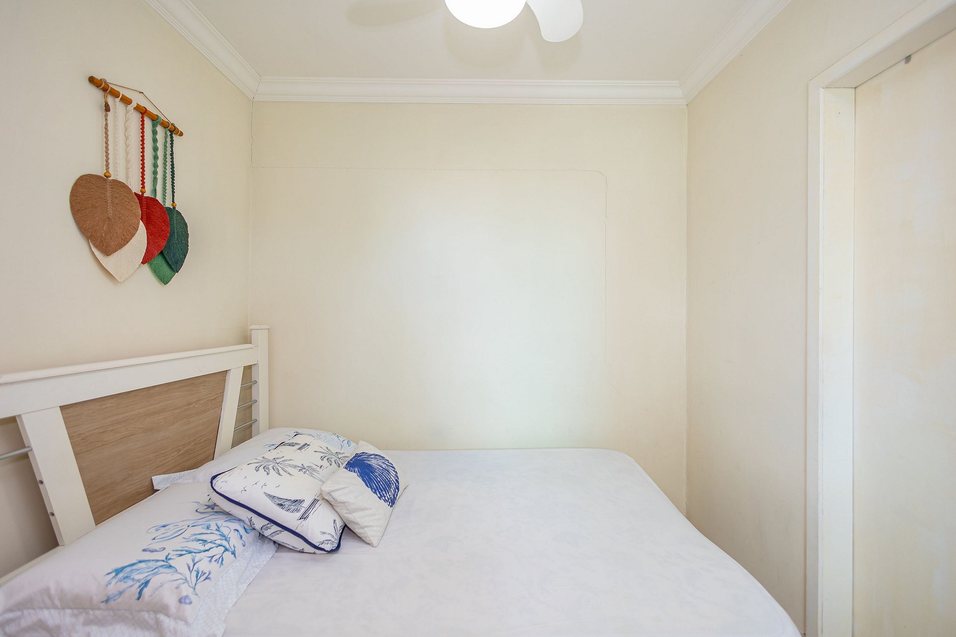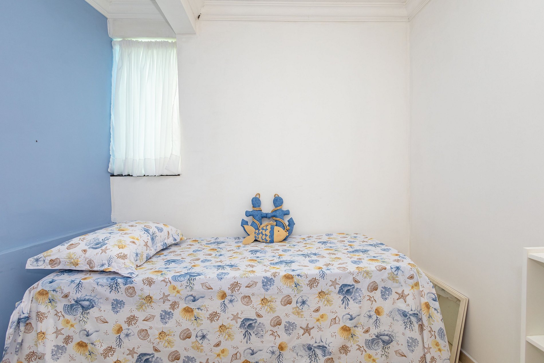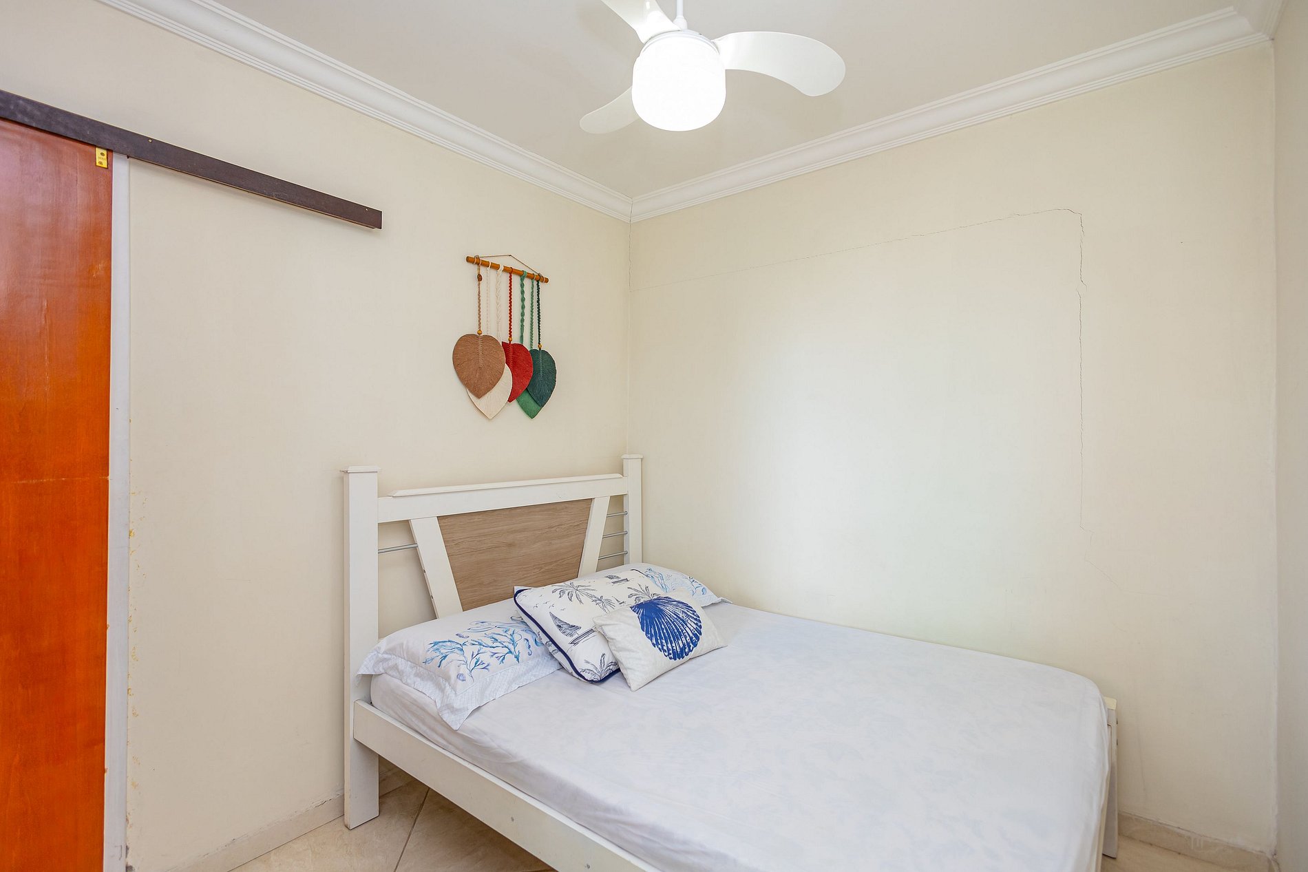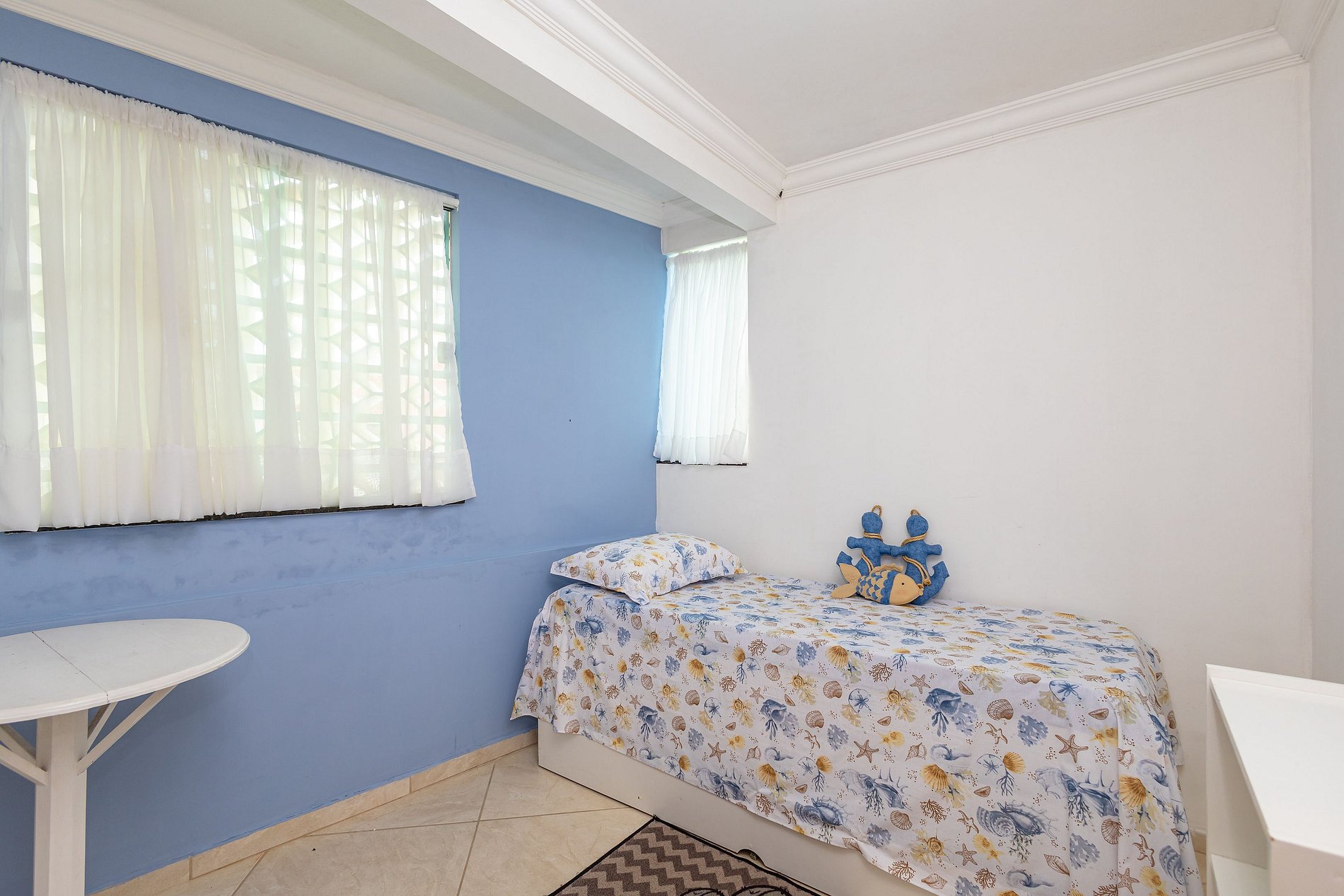 ▸Terceiro quarto com cama de solteiro e cama auxiliar, ideal para duas pessoas.