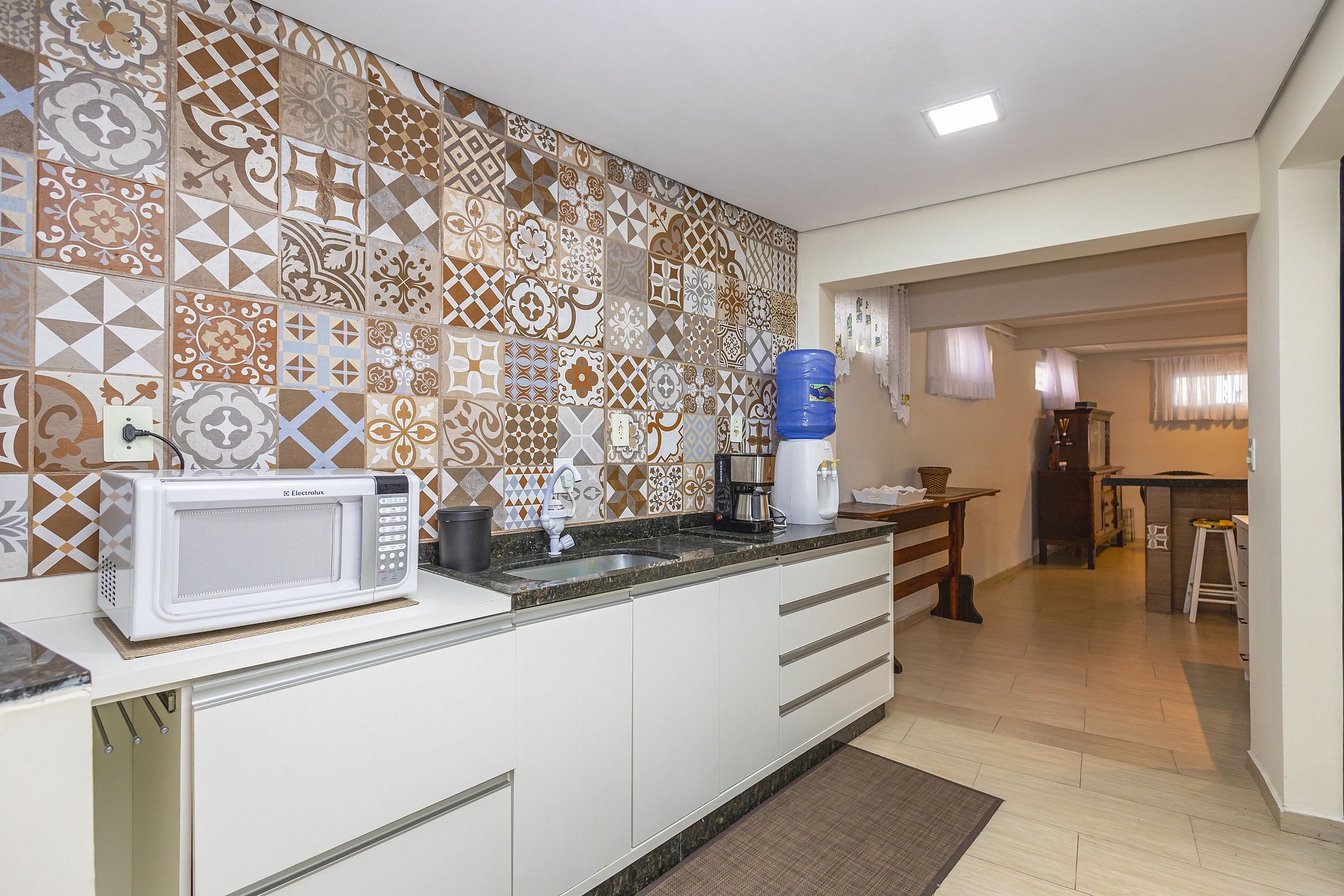 • Cozinha completa, equipada com fogão, forno, geladeira, freezer, micro-ondas, liquidificador e filtro de água para galão, garantindo praticidade no preparo das refeições.