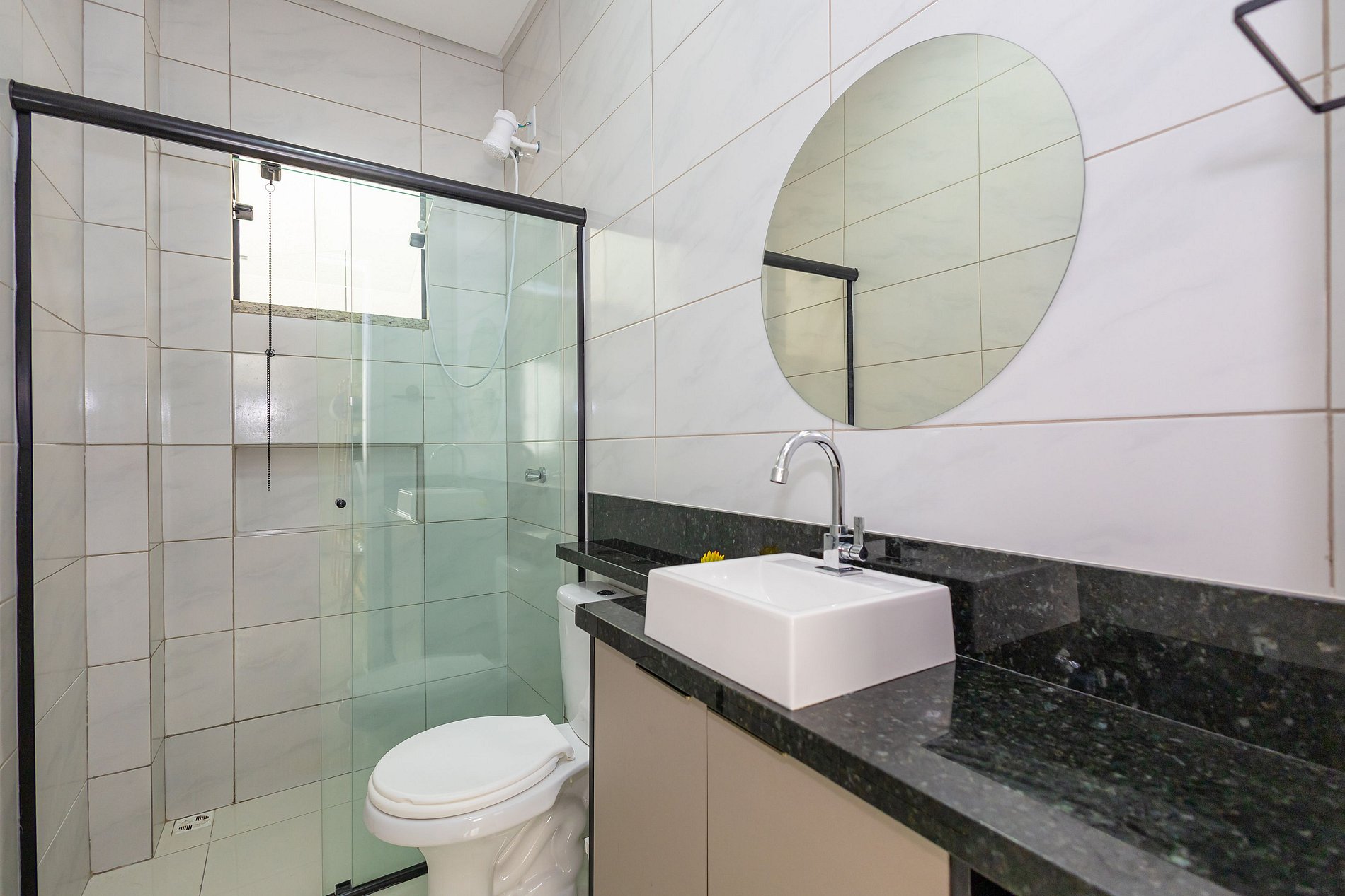• O imóvel dispõe de 2 banheiros, sendo 1 da suíte, ambos com água quente, para maior conforto dos hóspedes.