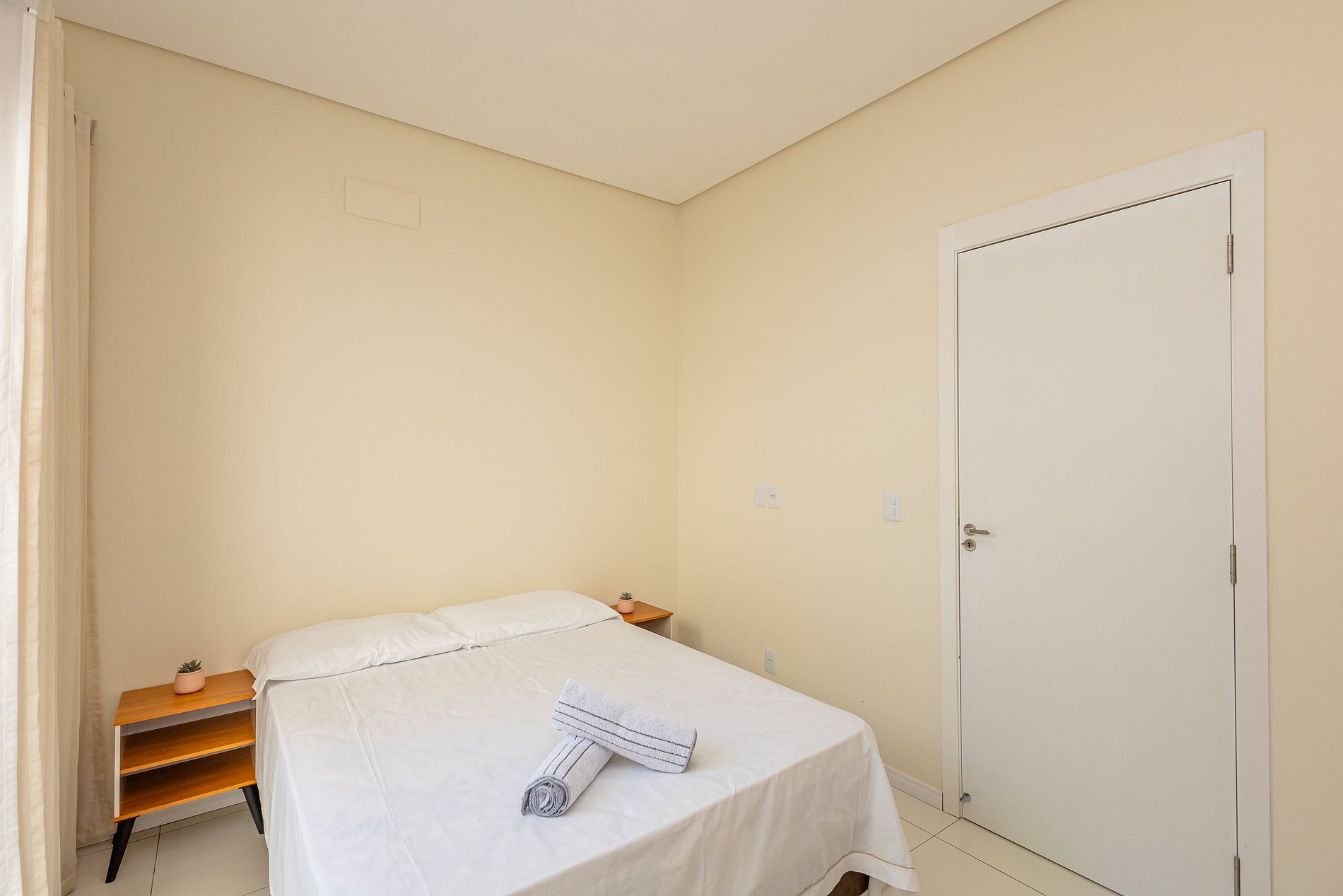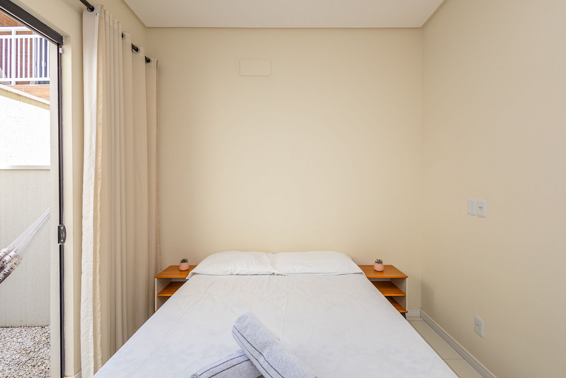 O imóvel oferece uma área externa com churrasqueira privativa e vaga de garagem, proporcionando praticidade e conforto para sua estadia.